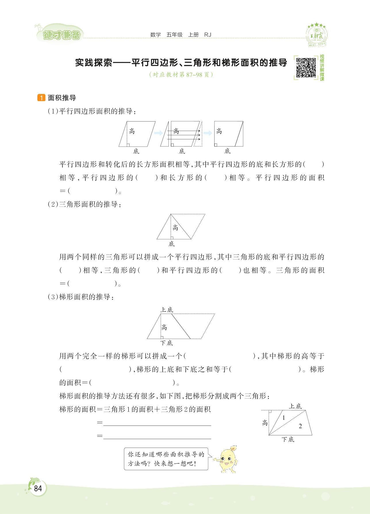 2022上册五年级数学人教版 第六单元 多边形的面积——实践探索 平行四边形、三角形和梯形面积的推导