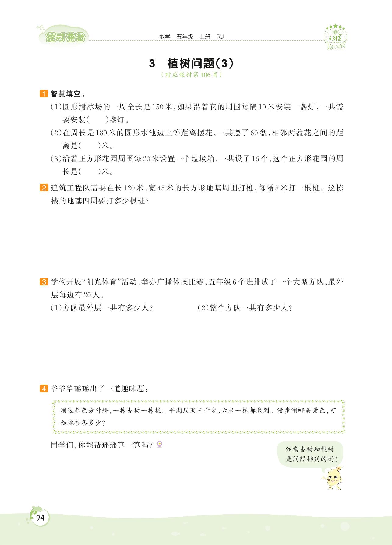 2022上册五年级数学人教版 第七单元 数学广角——植树问题——3 植树问题(3)