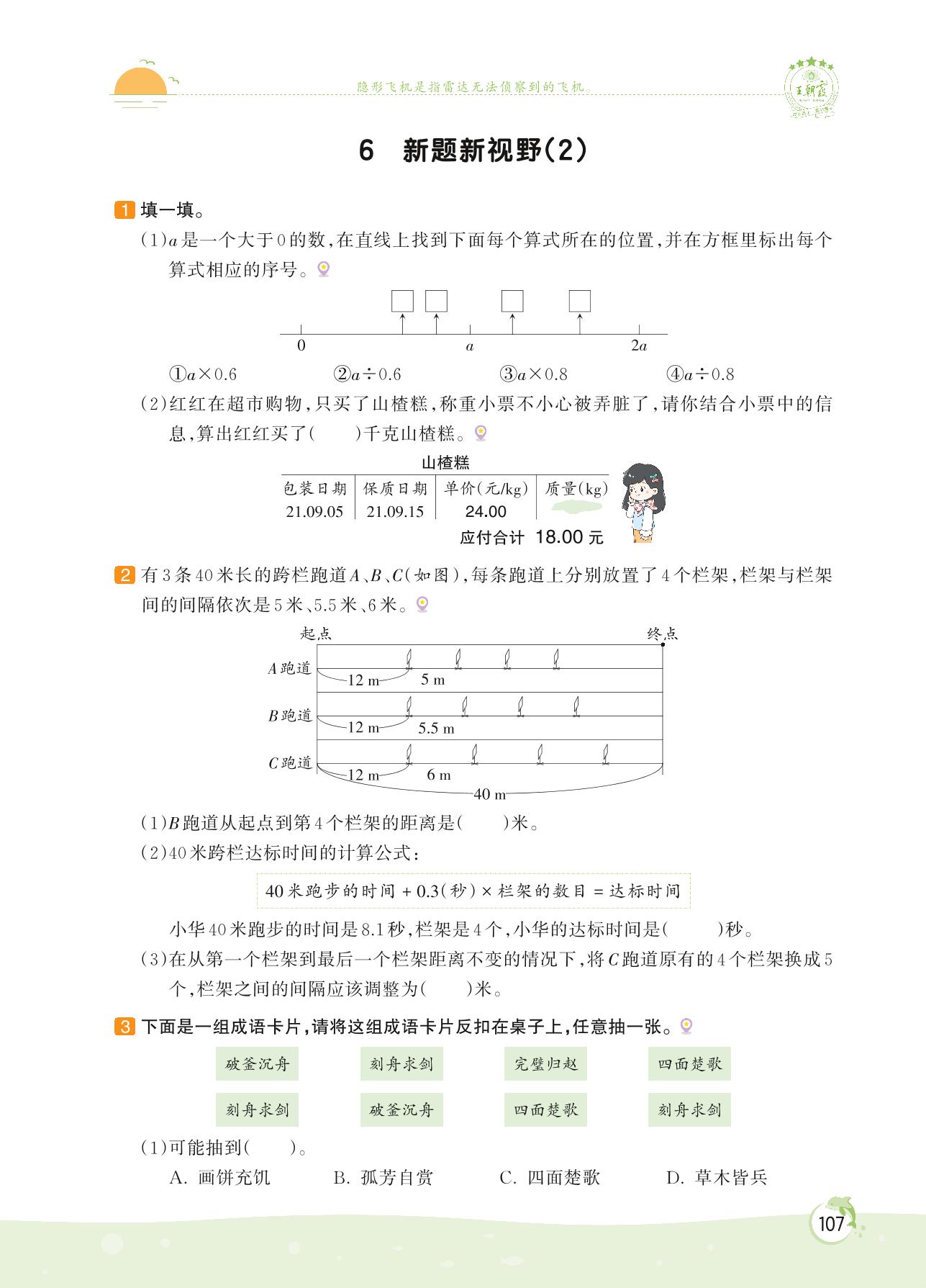 2022上册五年级数学人教版 第八单元 总复习——6 新题新视野(2)
