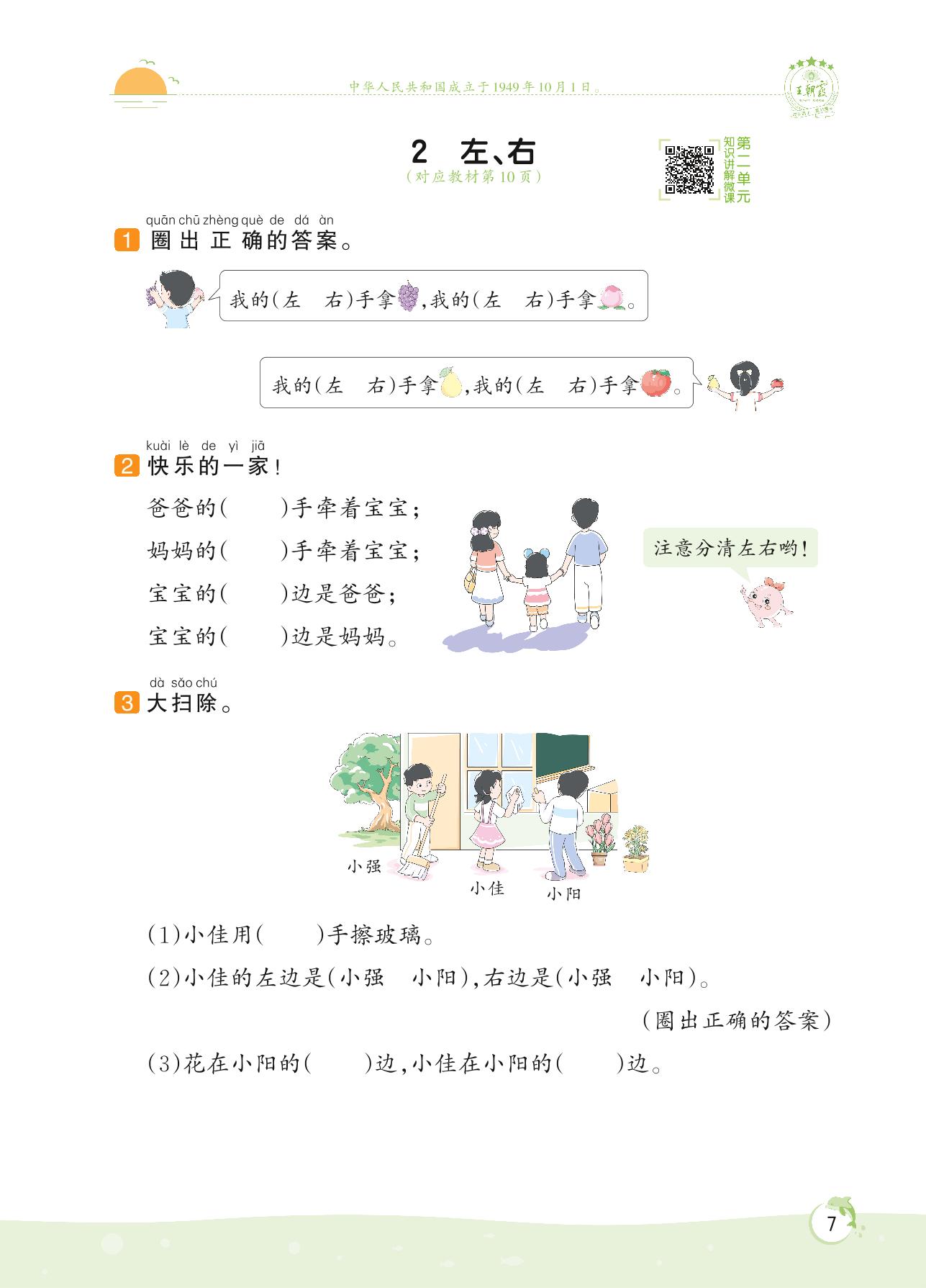 2022上册一年级数学人教版 第二单元 位置——2 左、右