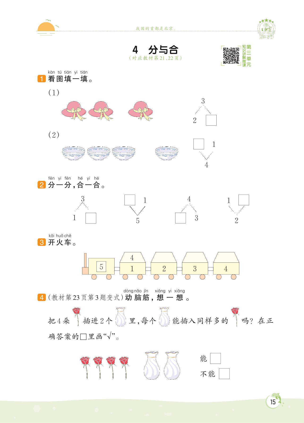2022上册一年级数学人教版 第三单元 5以内数的认识和加减法——4 分与合