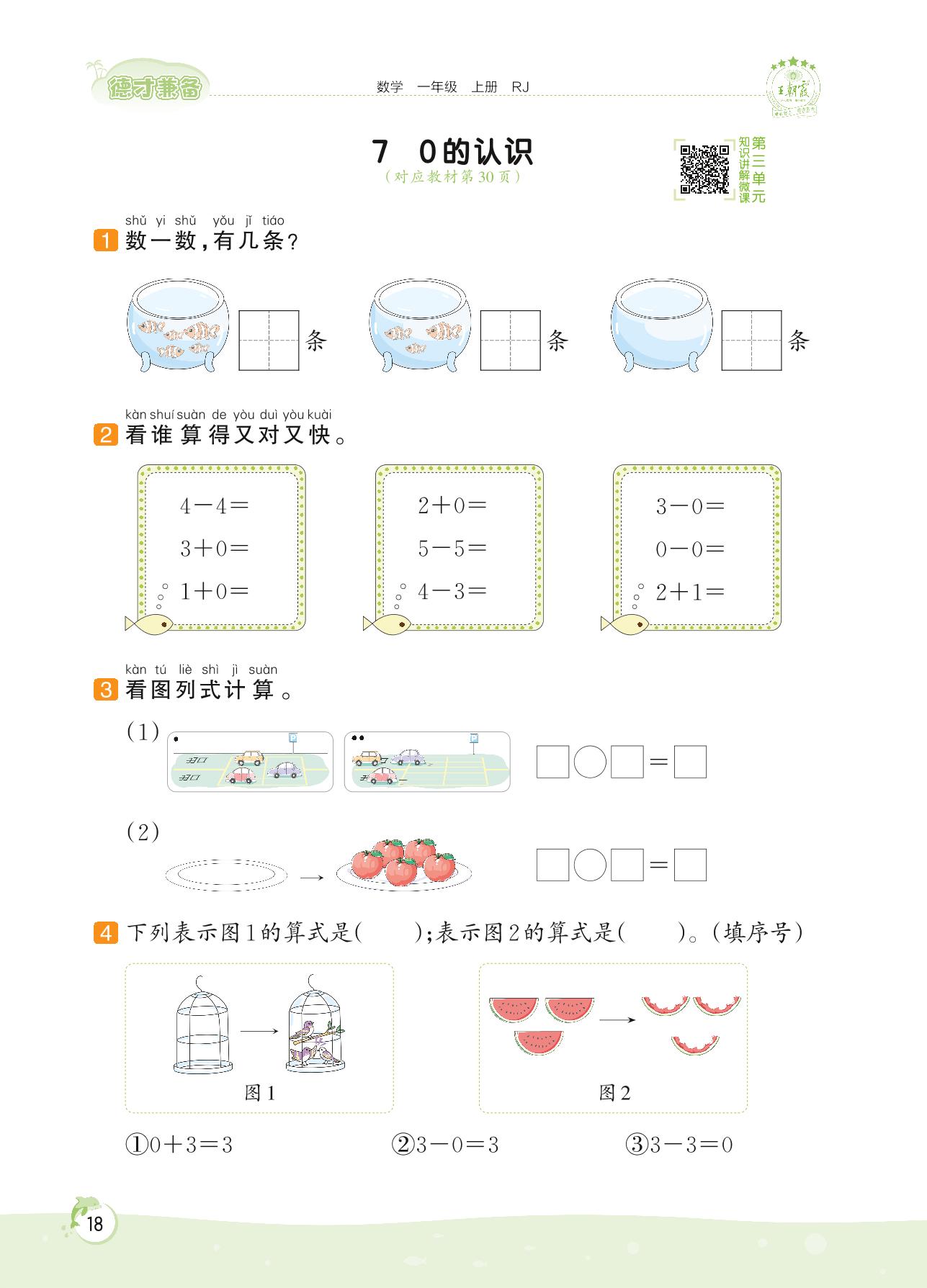 2022上册一年级数学人教版 第三单元 5以内数的认识和加减法——7 0的认识