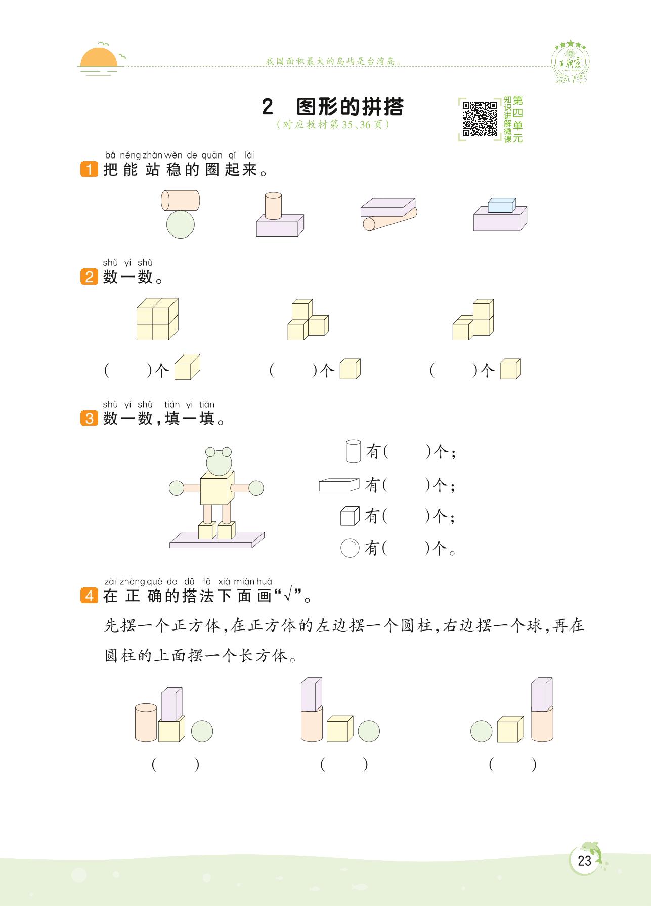 2022上册一年级数学人教版 第四单元 认识图形(一)——2 图形的拼搭