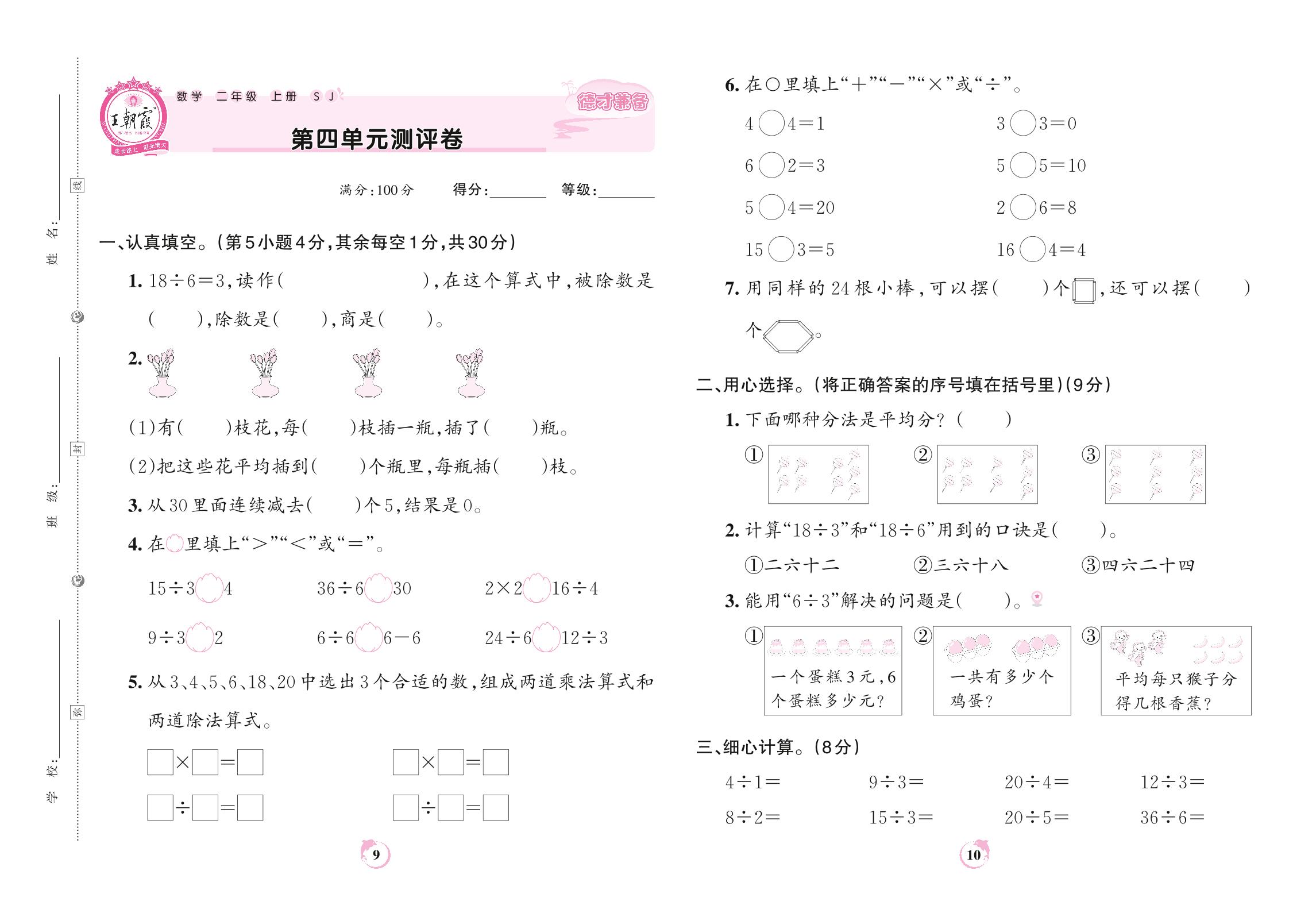 二年级数学苏教版上册单元卷