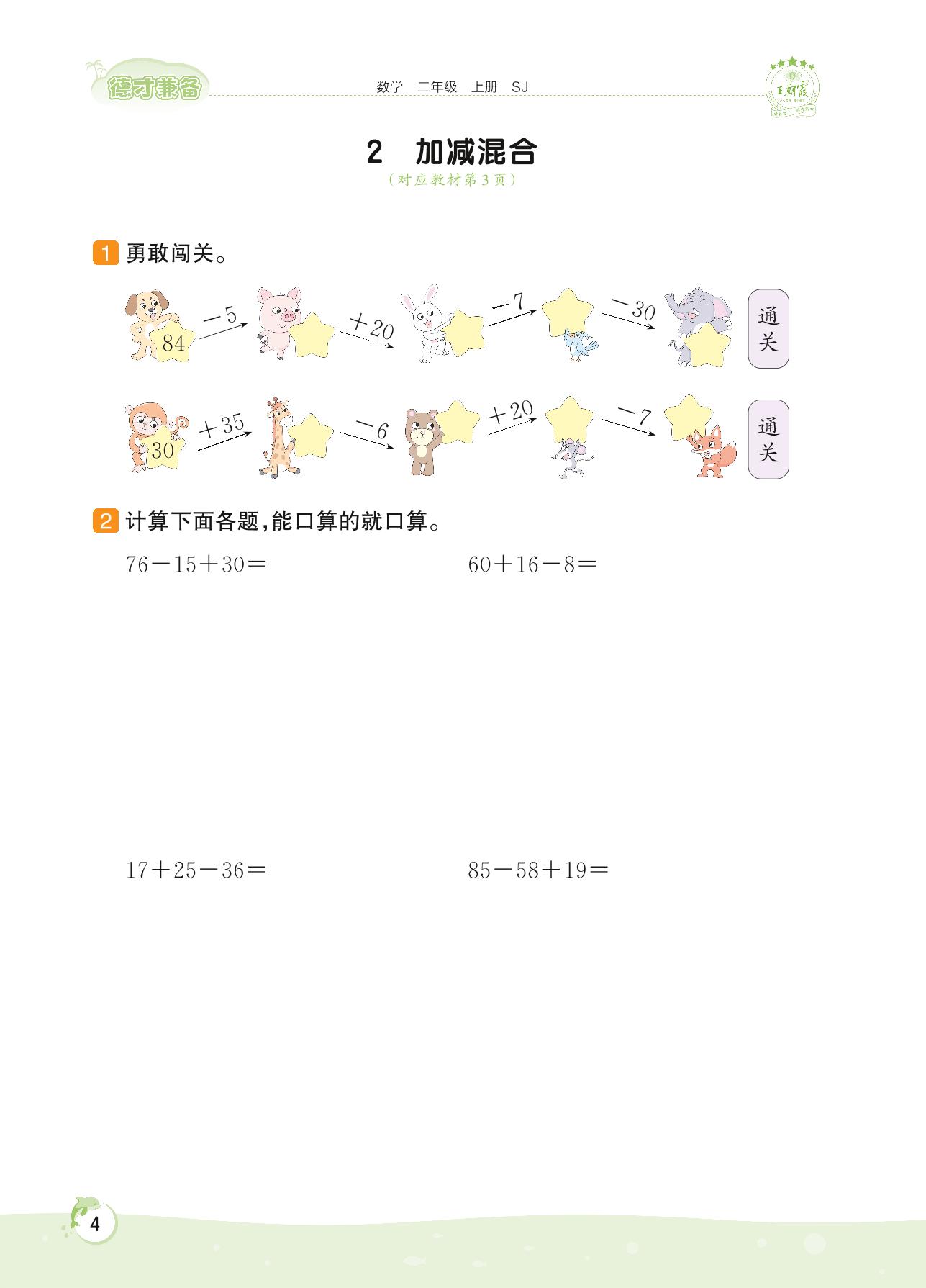 2022上册二年级数学苏教版 第一单元 100以内的加法和减法(三)——2 加减混合