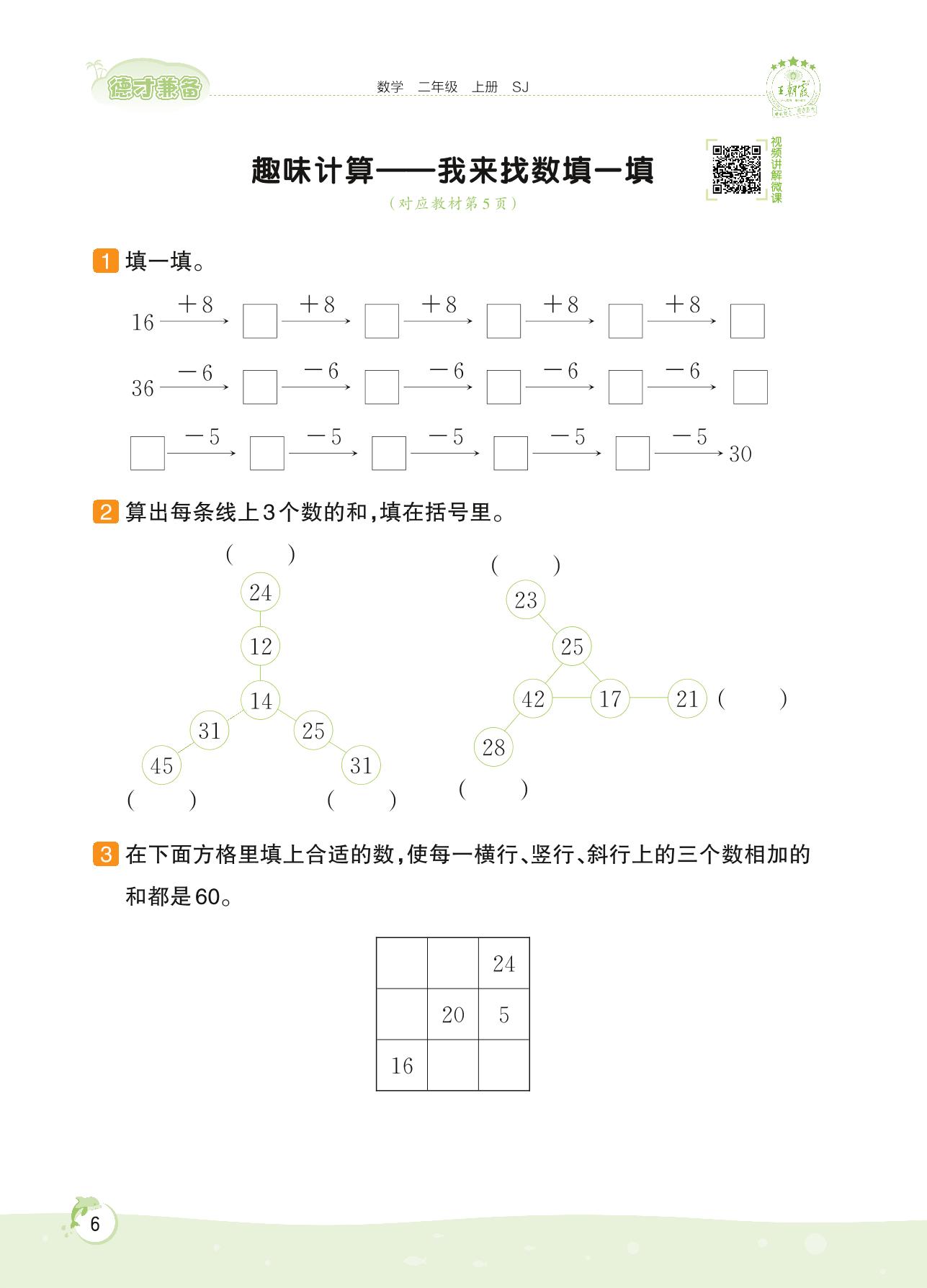 2022上册二年级数学苏教版 第一单元 100以内的加法和减法(三)——趣味计算 我来找数填一填