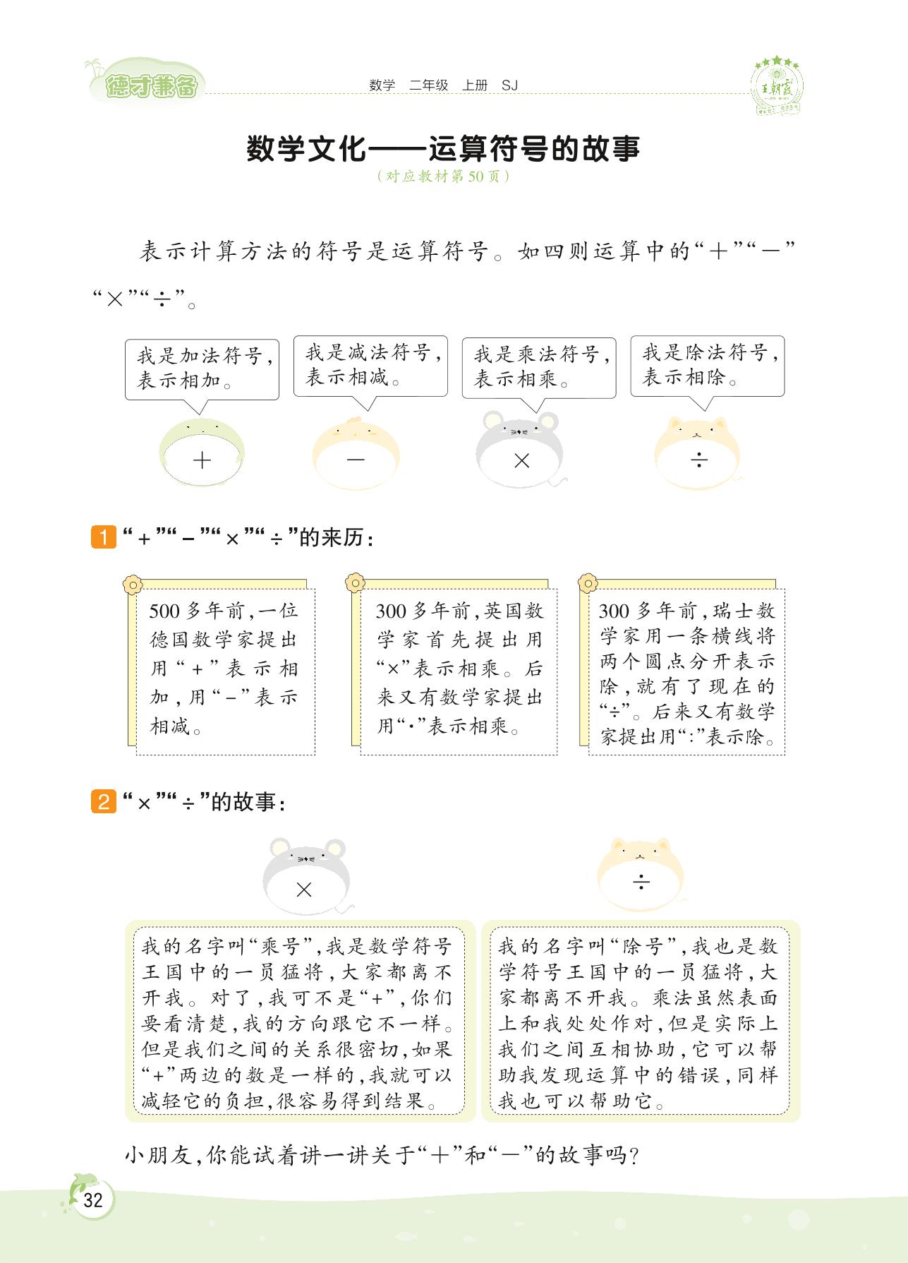 2022上册二年级数学苏教版 第四单元 表内除法(一)——数学文化 运算符号的故事