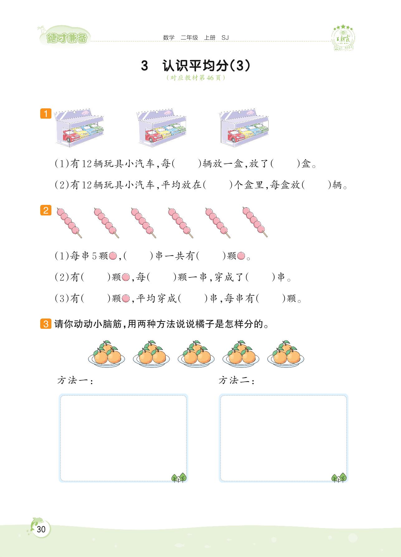 2022上册二年级数学苏教版 第四单元 表内除法(一)——3 认识平均分(3)