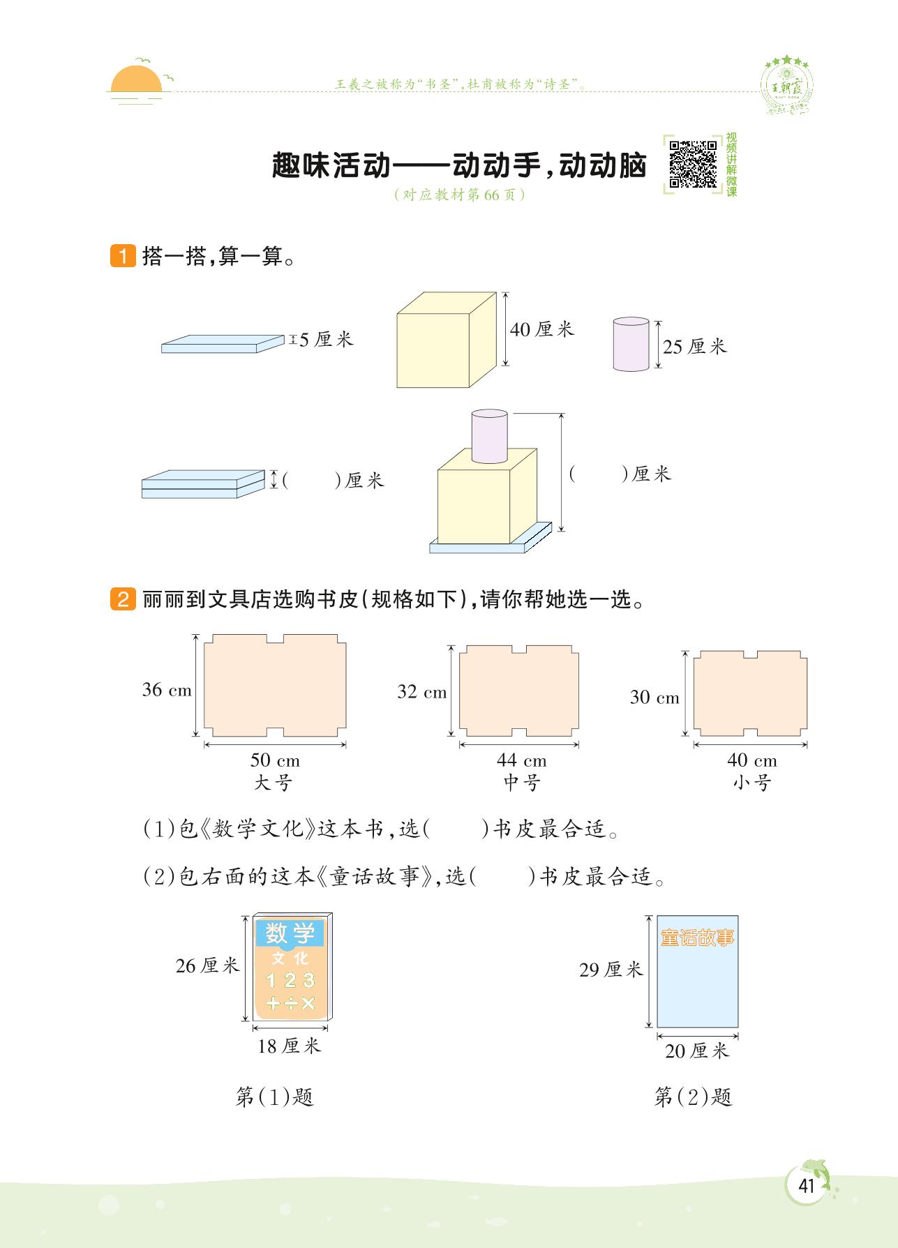 2022上册二年级数学苏教版 第五单元 厘米和米——趣味活动 动动手,动动脑