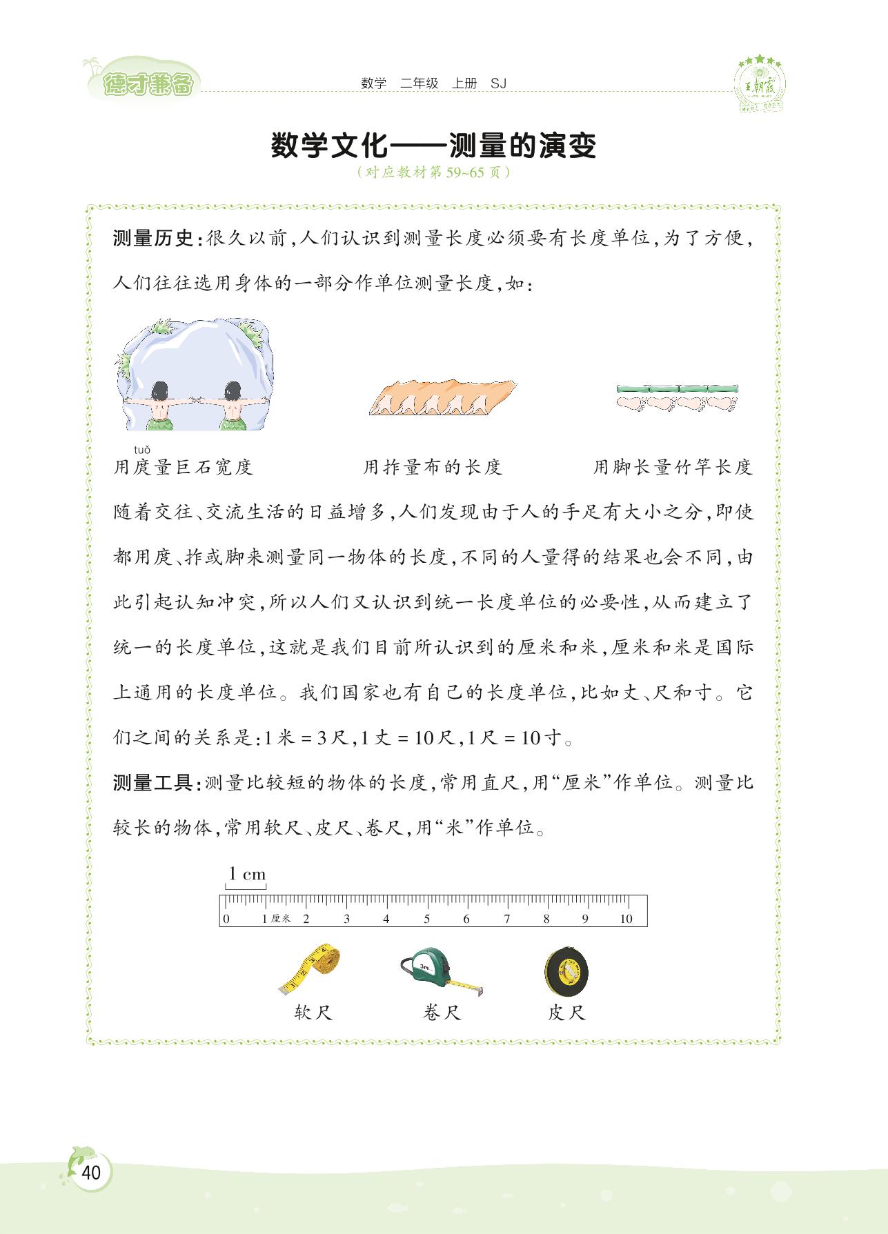2022上册二年级数学苏教版 第五单元 厘米和米——数学文化 测量的演变