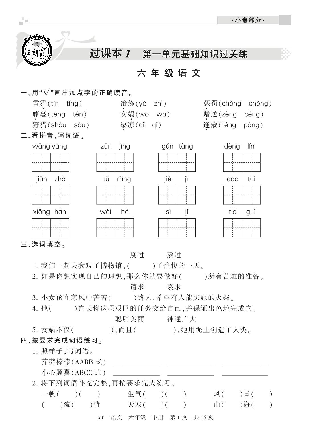 王朝霞期末小卷六年级下册语文(S版)_R21080241103【0】