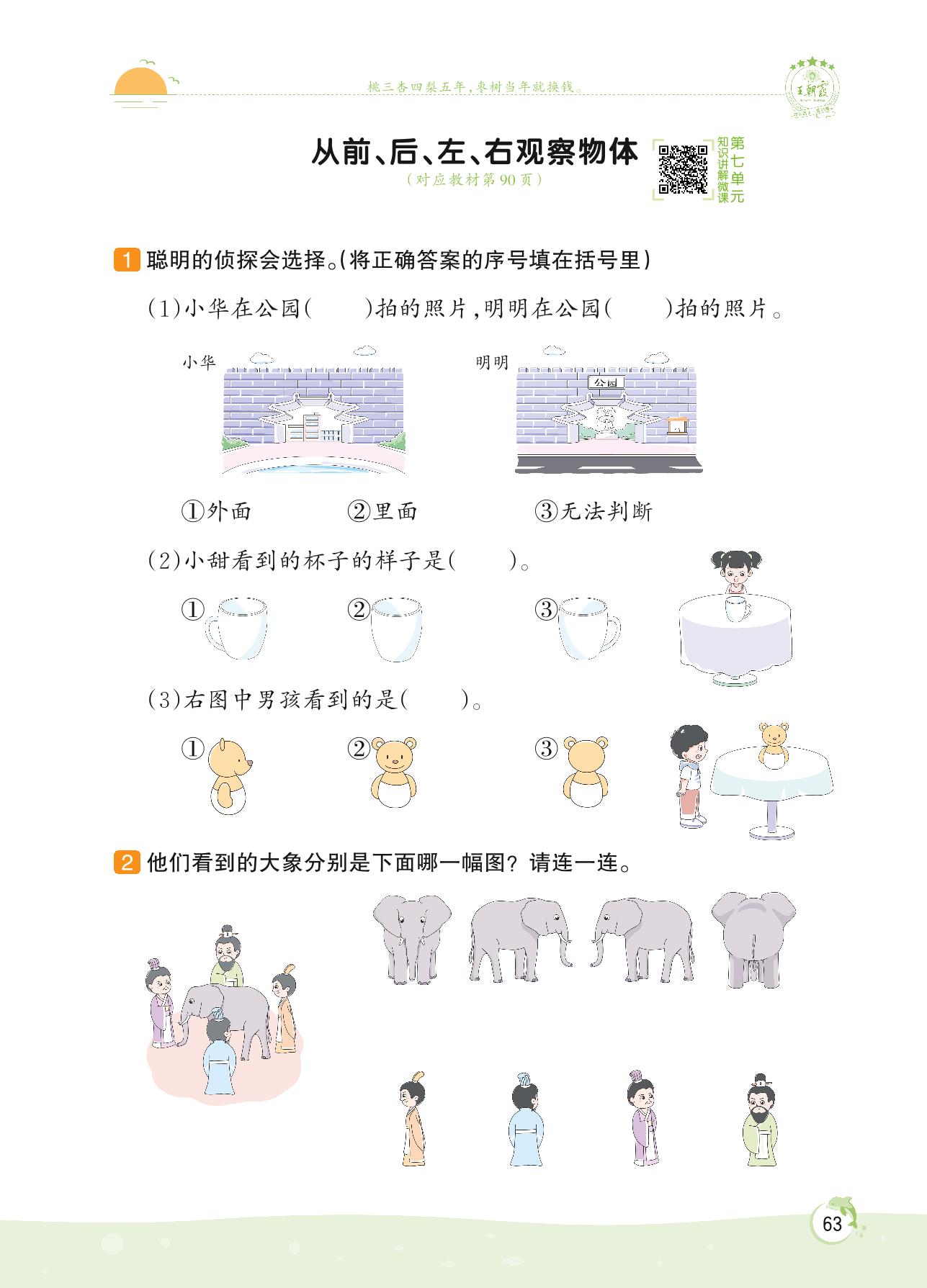 2022上册二年级数学苏教版 第七单元 观察物体——从前、后、左、右观察物体