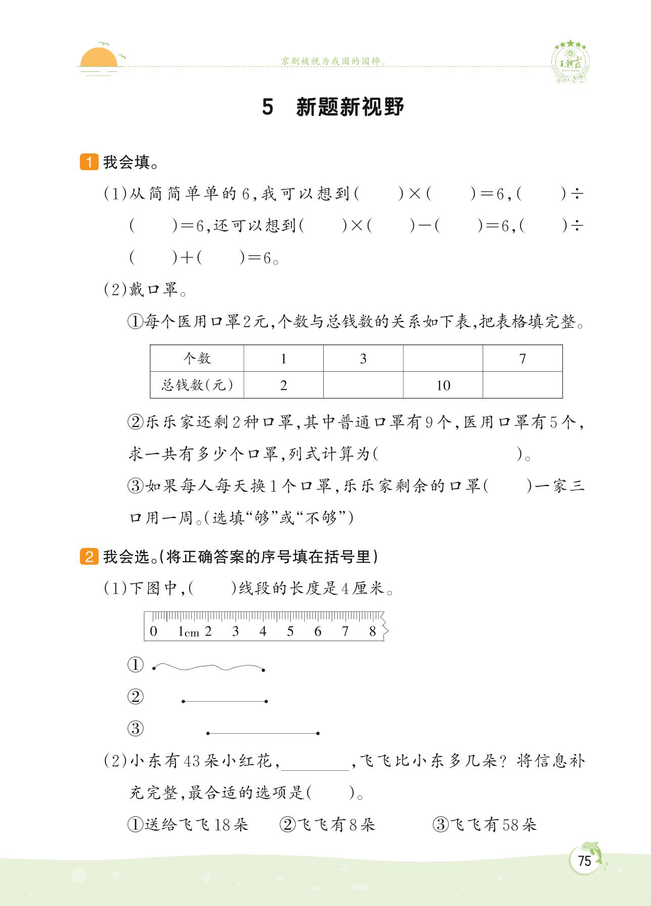 2022上册二年级数学苏教版 第八单元 期末复习——5 新题新视野