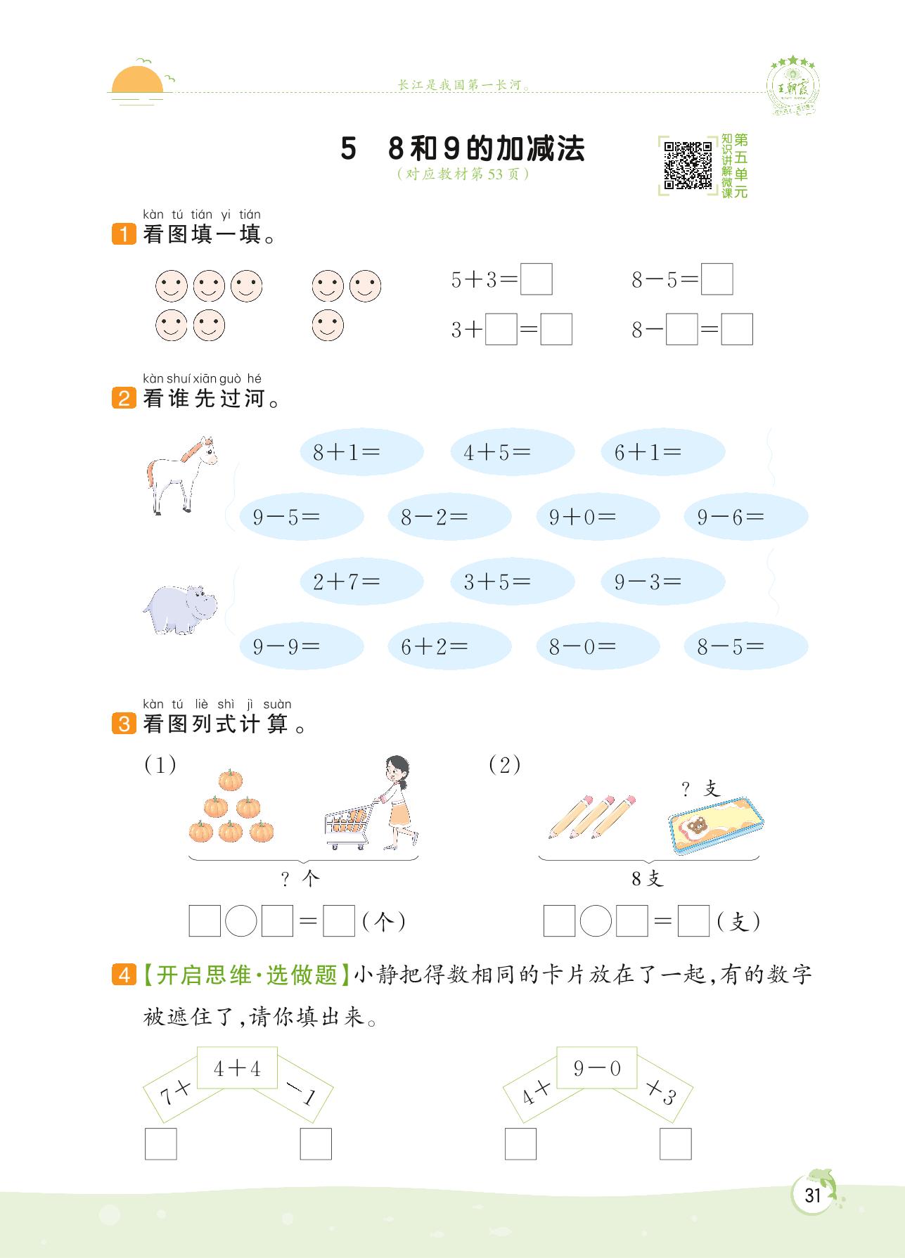2022上册一年级数学人教版 第五单元 6~10的认识和加减法——5 8和9的加减法