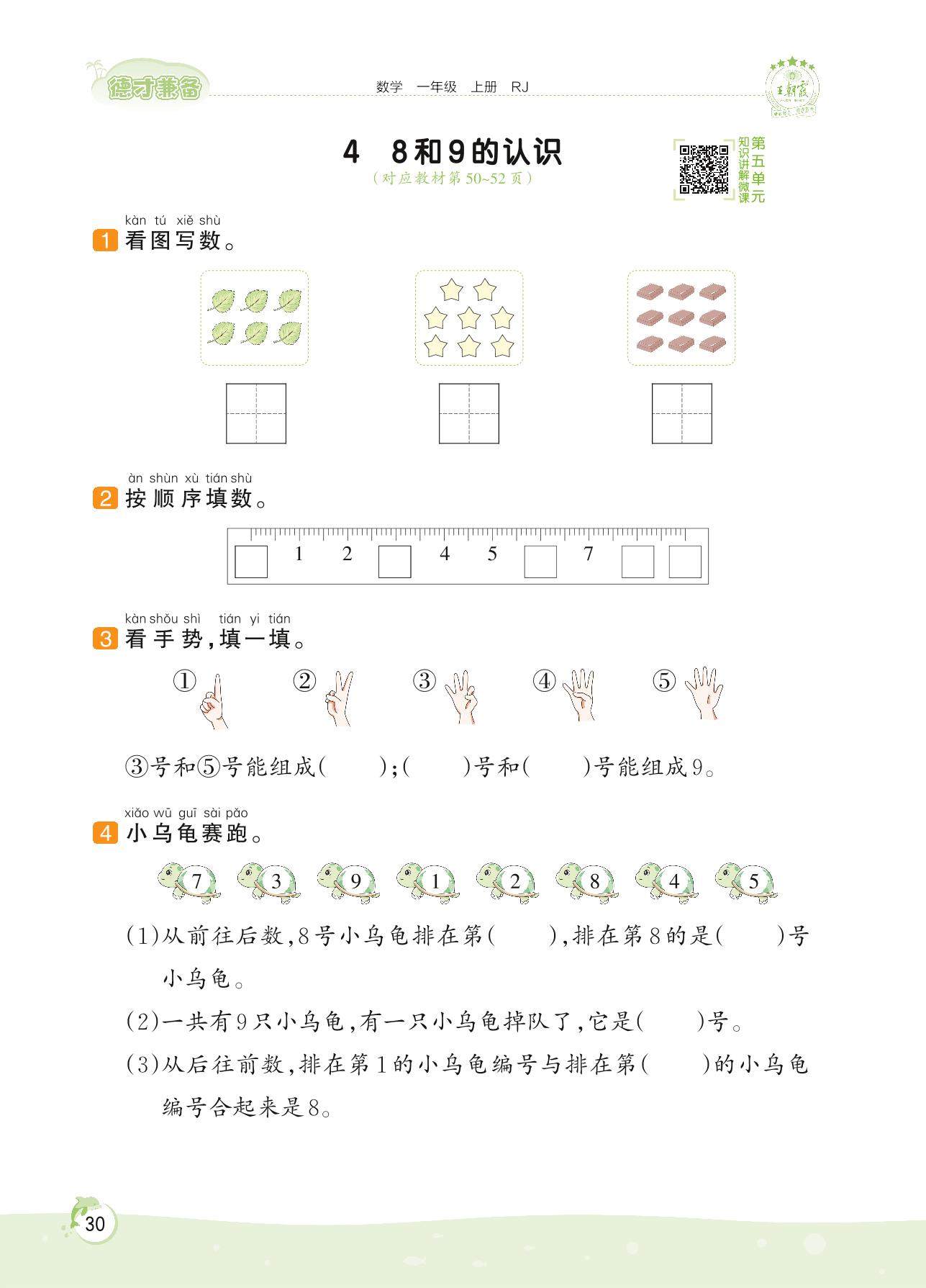 2022上册一年级数学人教版 第五单元 6~10的认识和加减法——4 8和9的认识