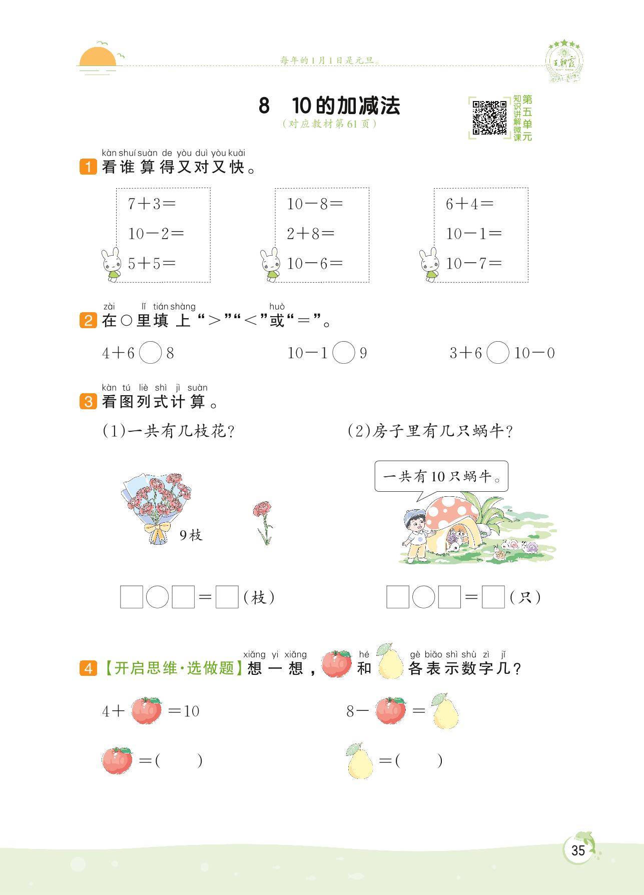2022上册一年级数学人教版 第五单元 6~10的认识和加减法——8 10的加减法