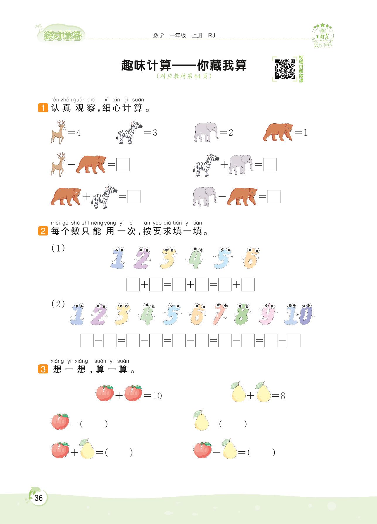 2022上册一年级数学人教版 第五单元 6~10的认识和加减法——趣味计算 你藏我算