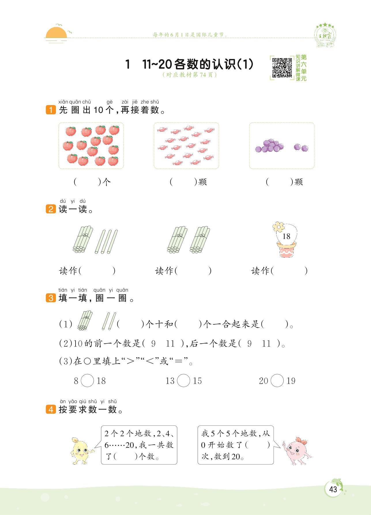 2022上册一年级数学人教版 第六单元 11~20各数的认识——1 11~20各数的认识(1)