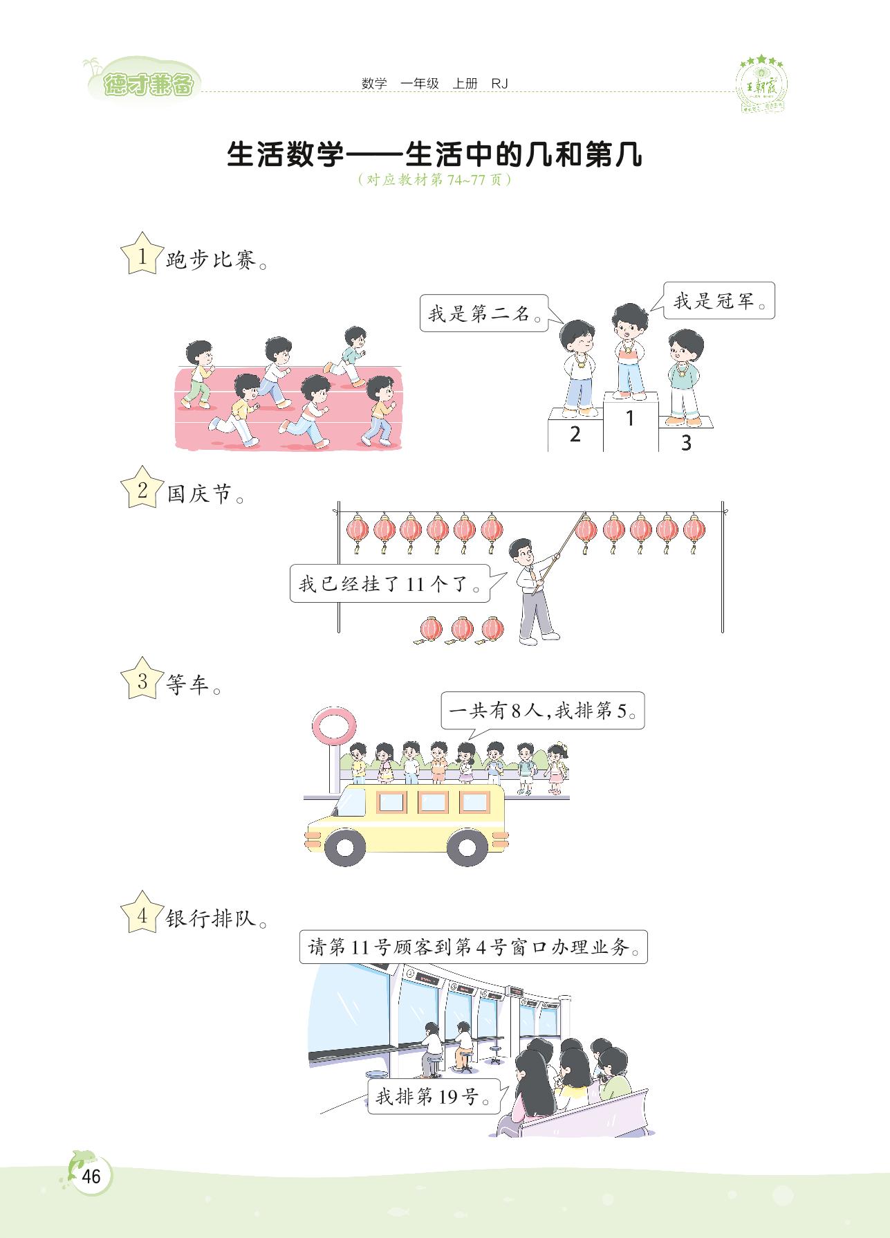 2022上册一年级数学人教版 第六单元 11~20各数的认识——生活数学 生活中的几和第几