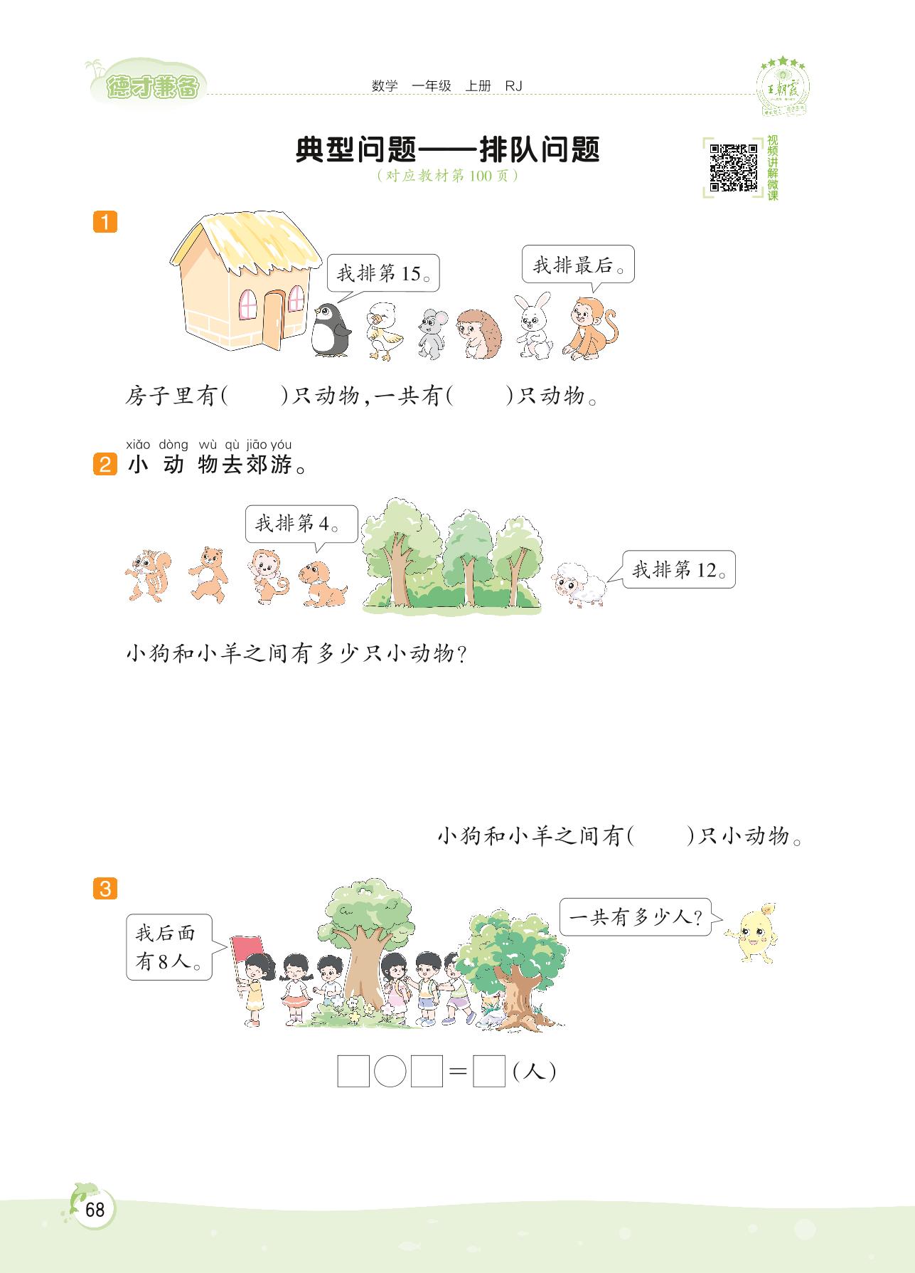 2022上册一年级数学人教版 第八单元 20以内的进位加法——典型问题 排队问题