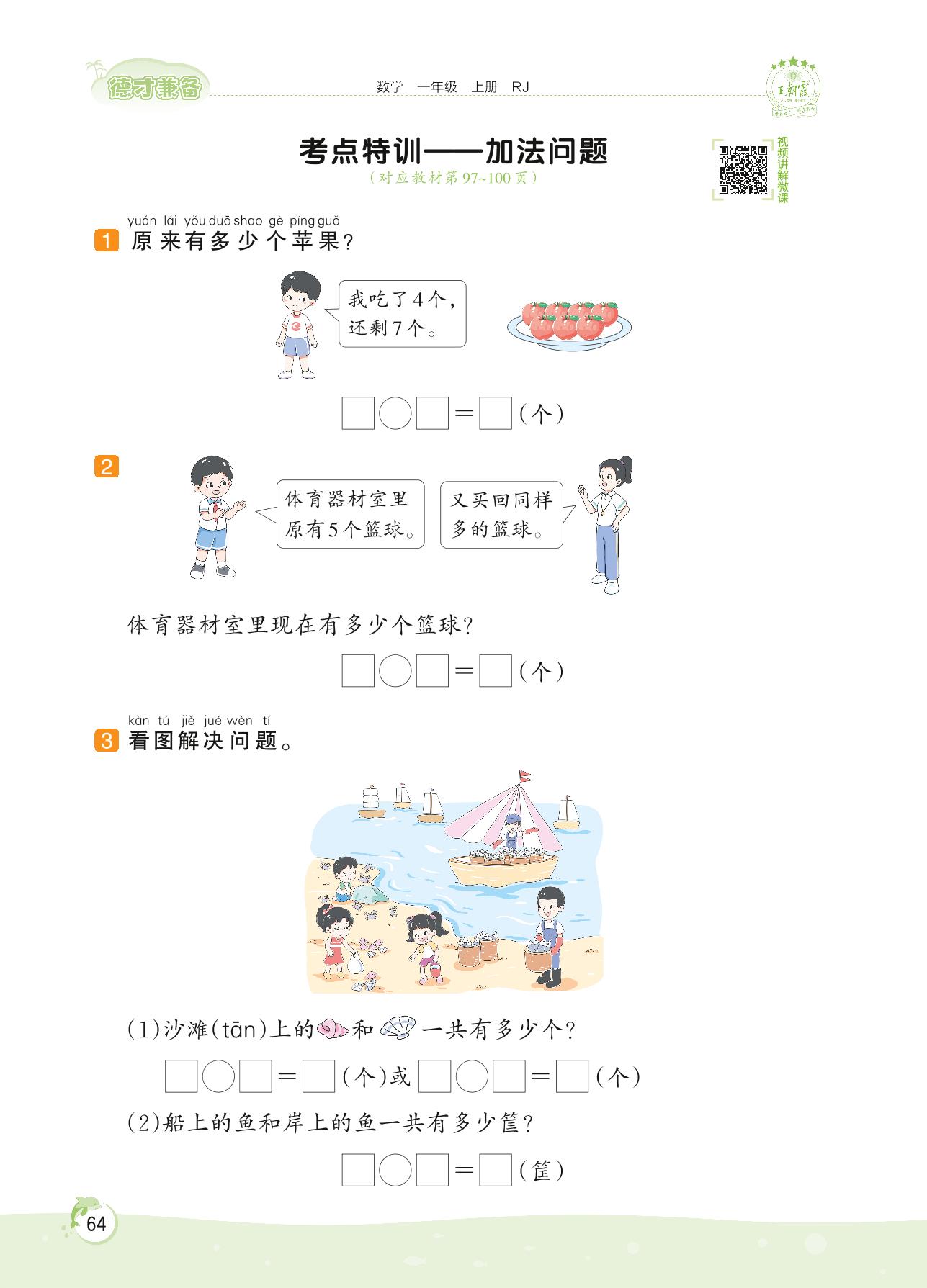 2022上册一年级数学人教版 第八单元 20以内的进位加法——考点特训 加法问题
