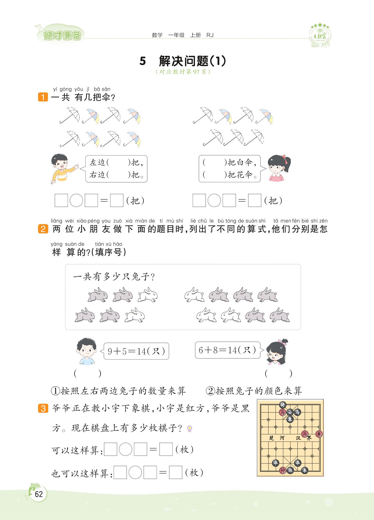 2022上册一年级数学人教版 第八单元 20以内的进位加法——5 解决问题(1)