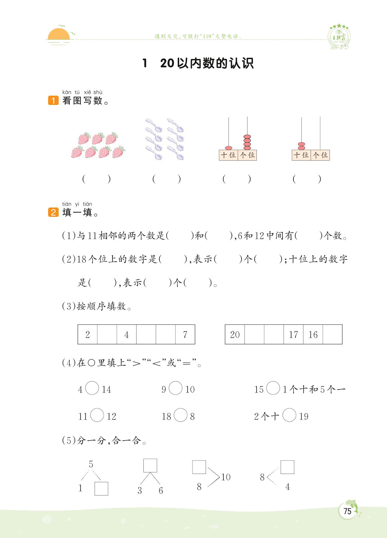 2022上册一年级数学人教版 第九单元 总复习——1 20以内数的认识
