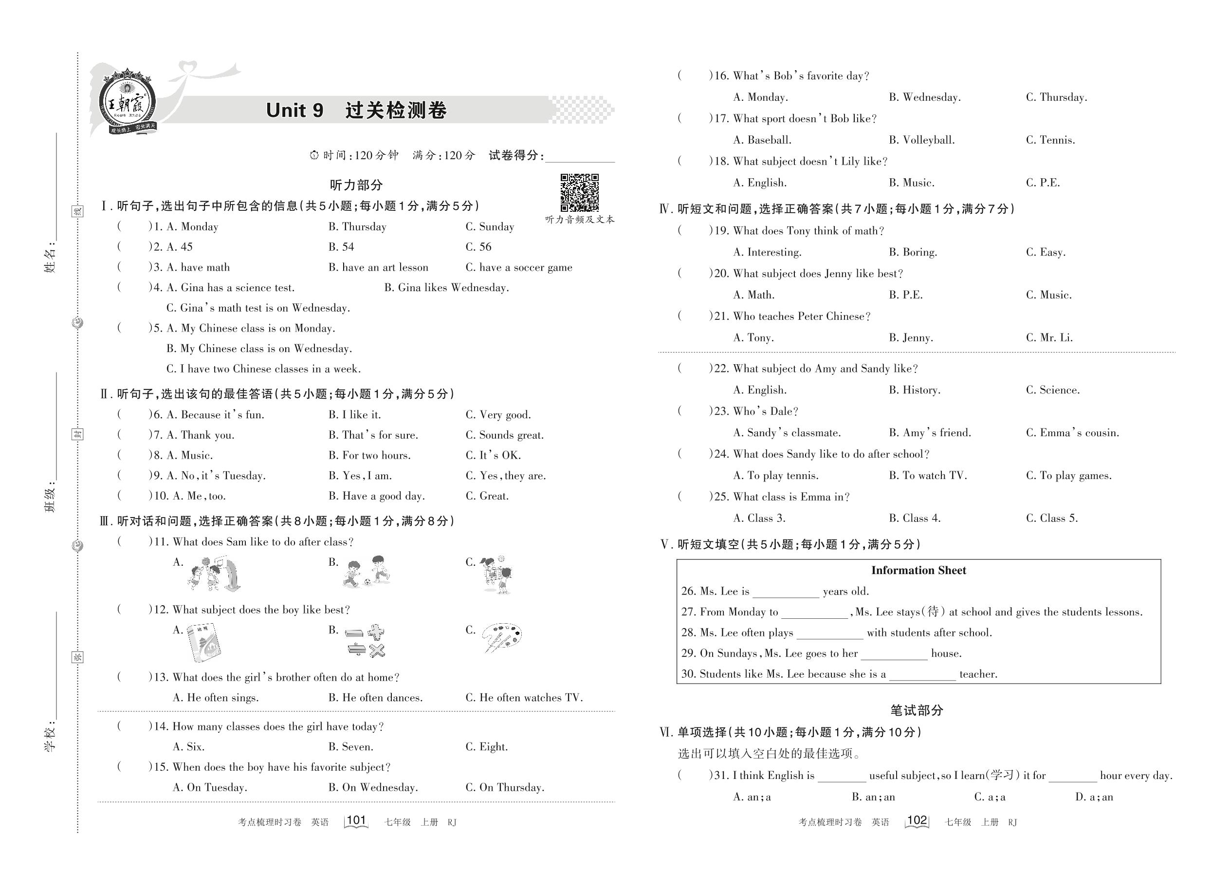 2022上册七年级英语人教版 Unit 9 过关检测卷