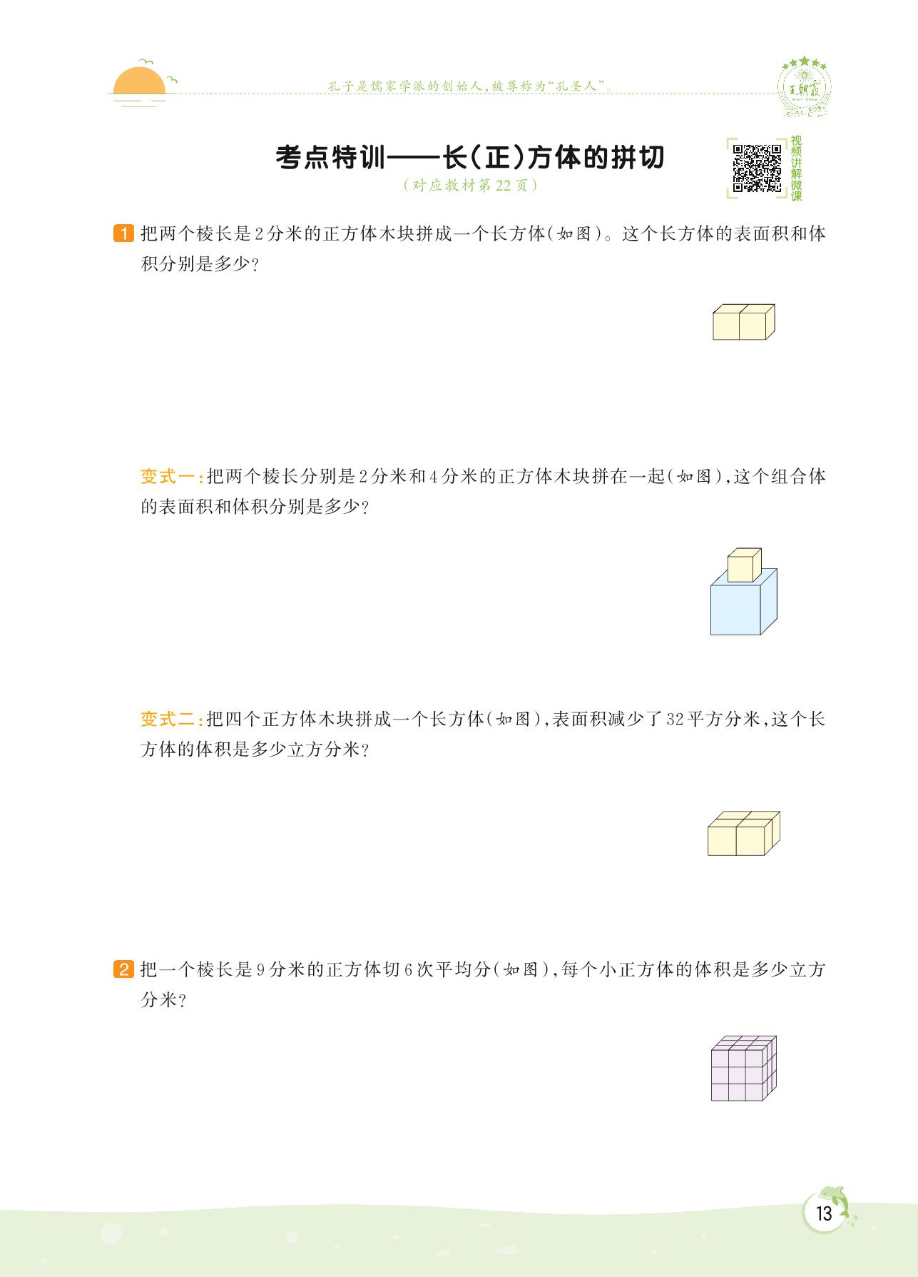 2022上册六年级数学苏教版 第一单元 长方体和正方体——考点特训 长(正)方体的拼切