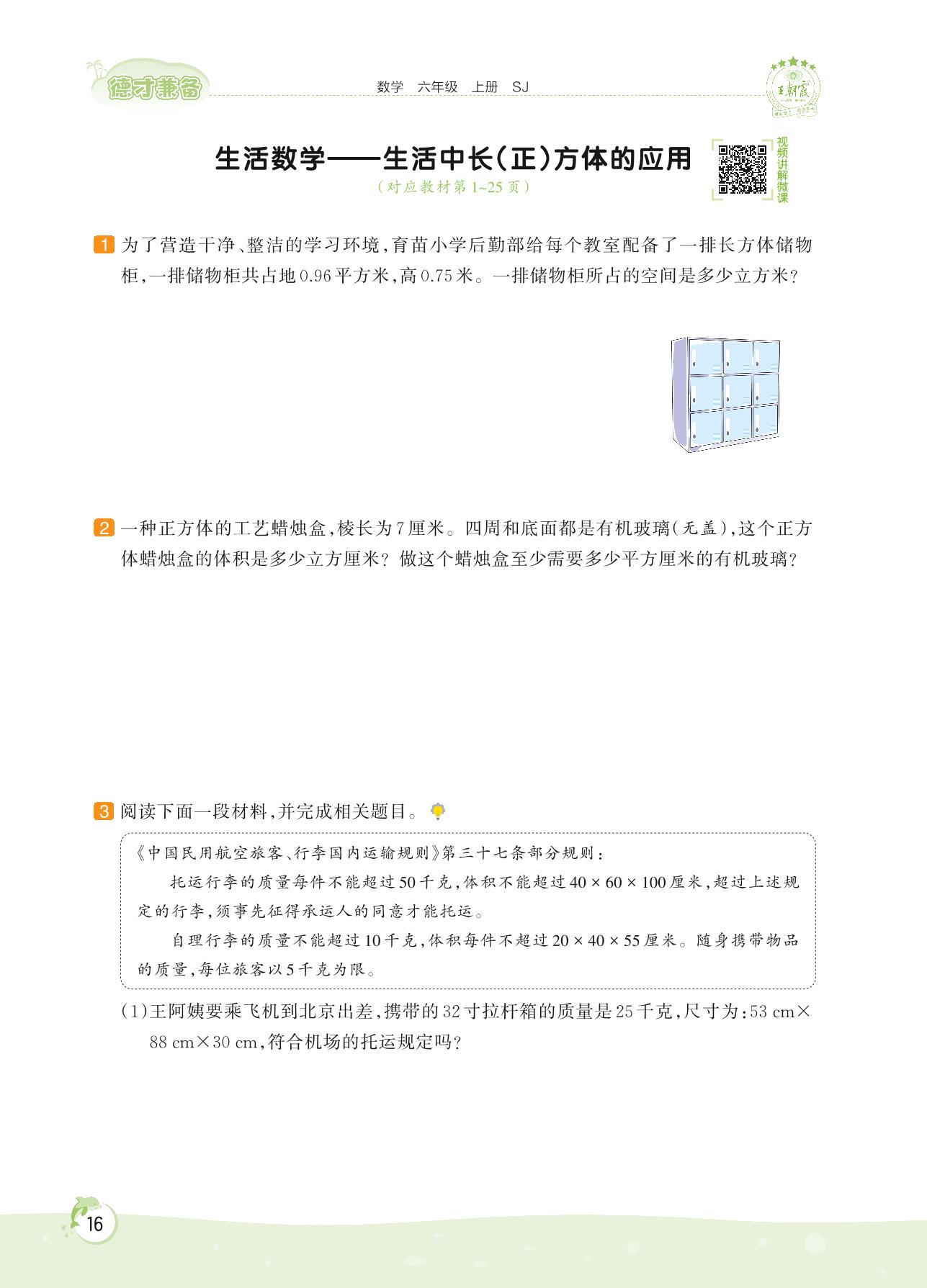 2022上册六年级数学苏教版 第一单元 长方体和正方体——生活数学 生活中长(正)方体的应用