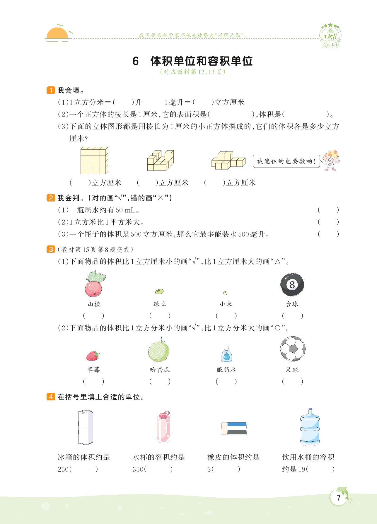 2022上册六年级数学苏教版 第一单元 长方体和正方体——6 体积单位和容积单位