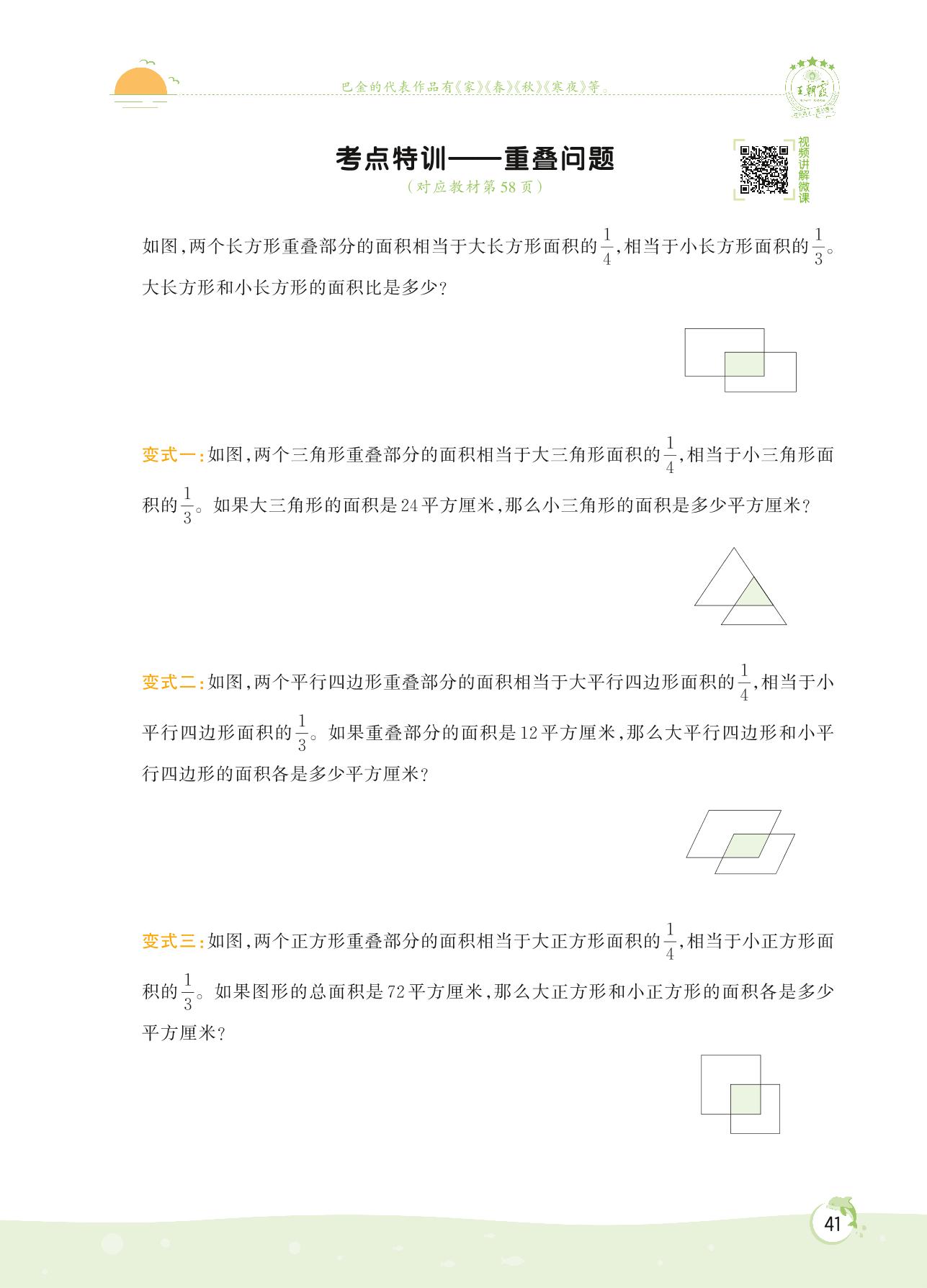 2022上册六年级数学苏教版 第三单元 分数除法——考点特训 重叠问题