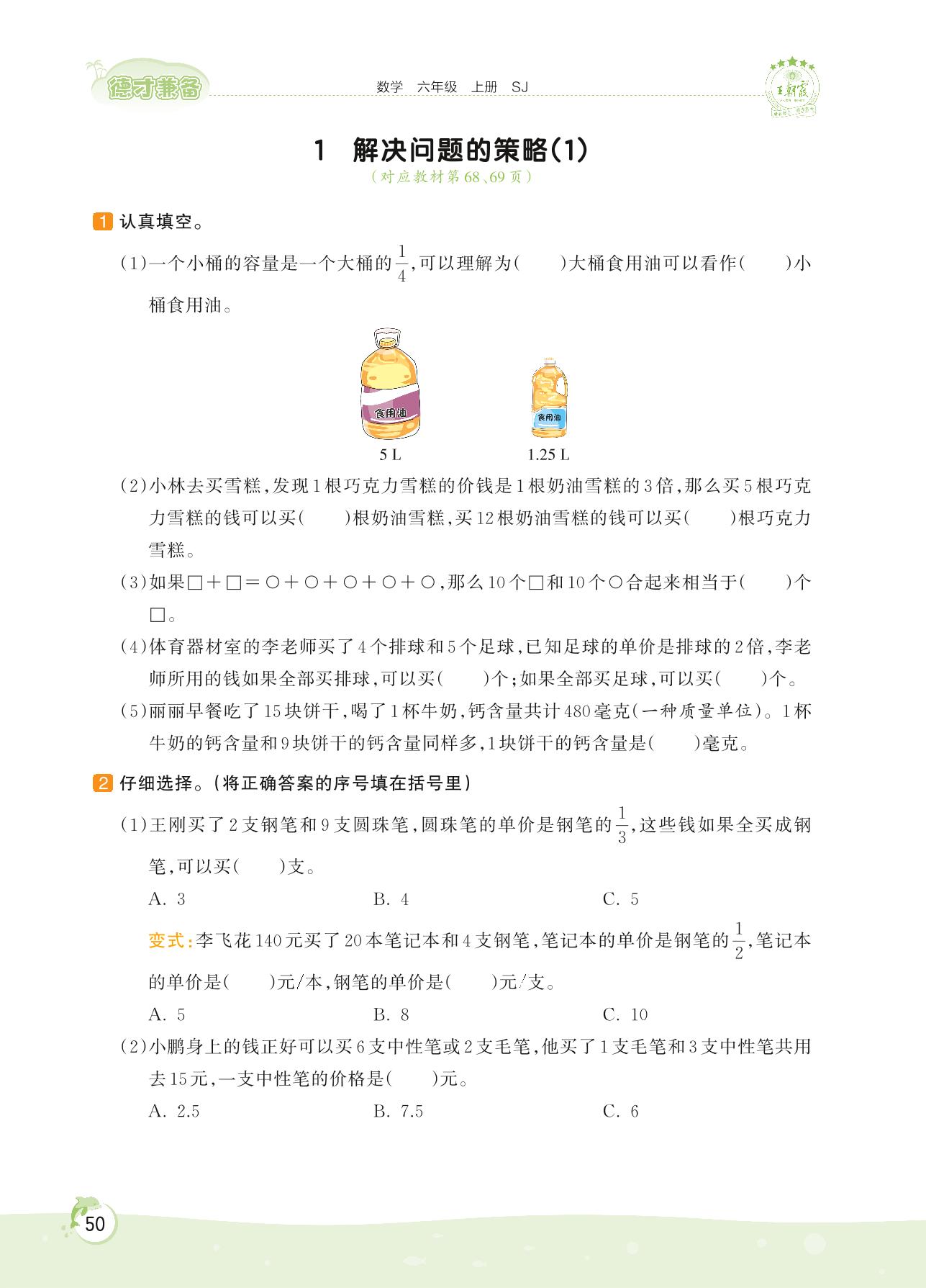 2022上册六年级数学苏教版 第四单元 解决问题的策略——1 解决问题的策略(1)