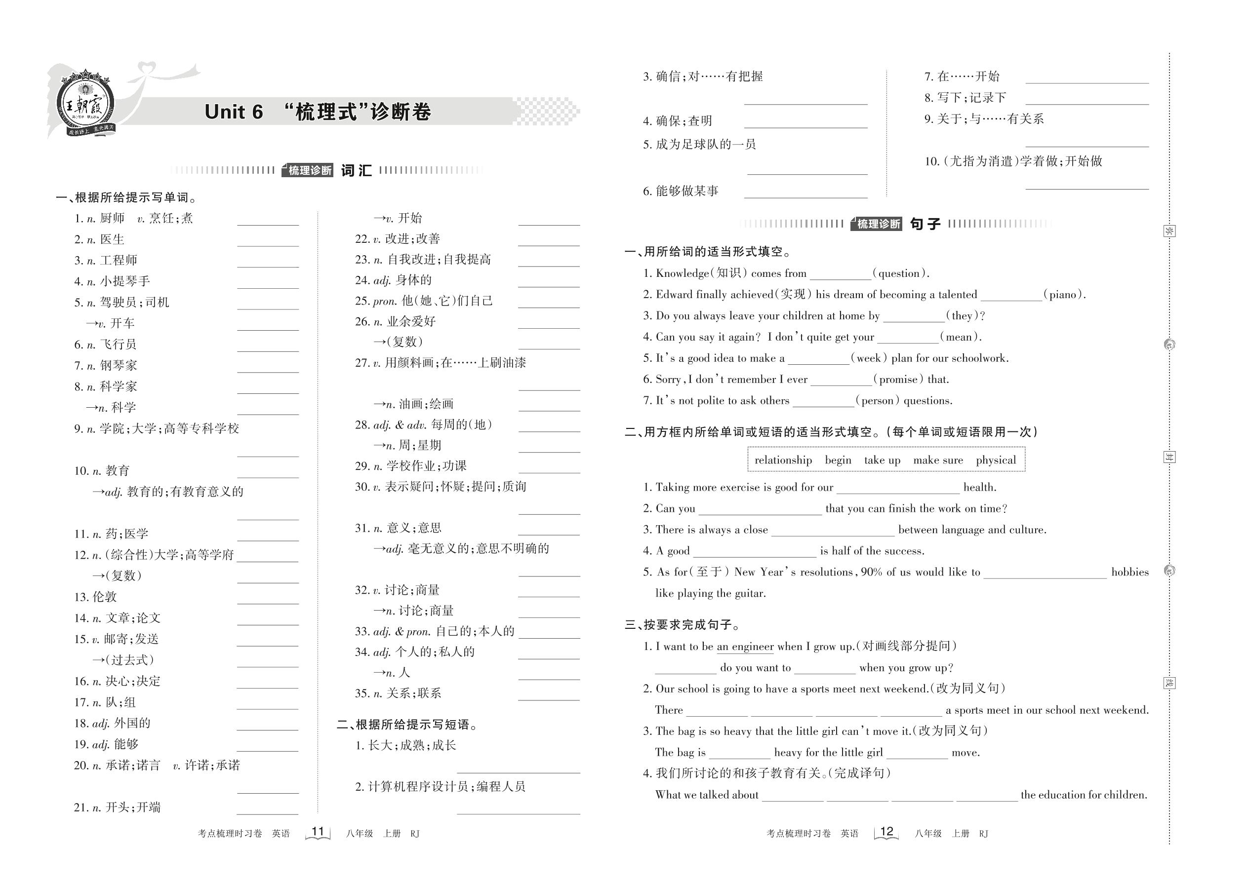 2022上册八年级英语人教版 Unit 6 “梳理式”诊断卷