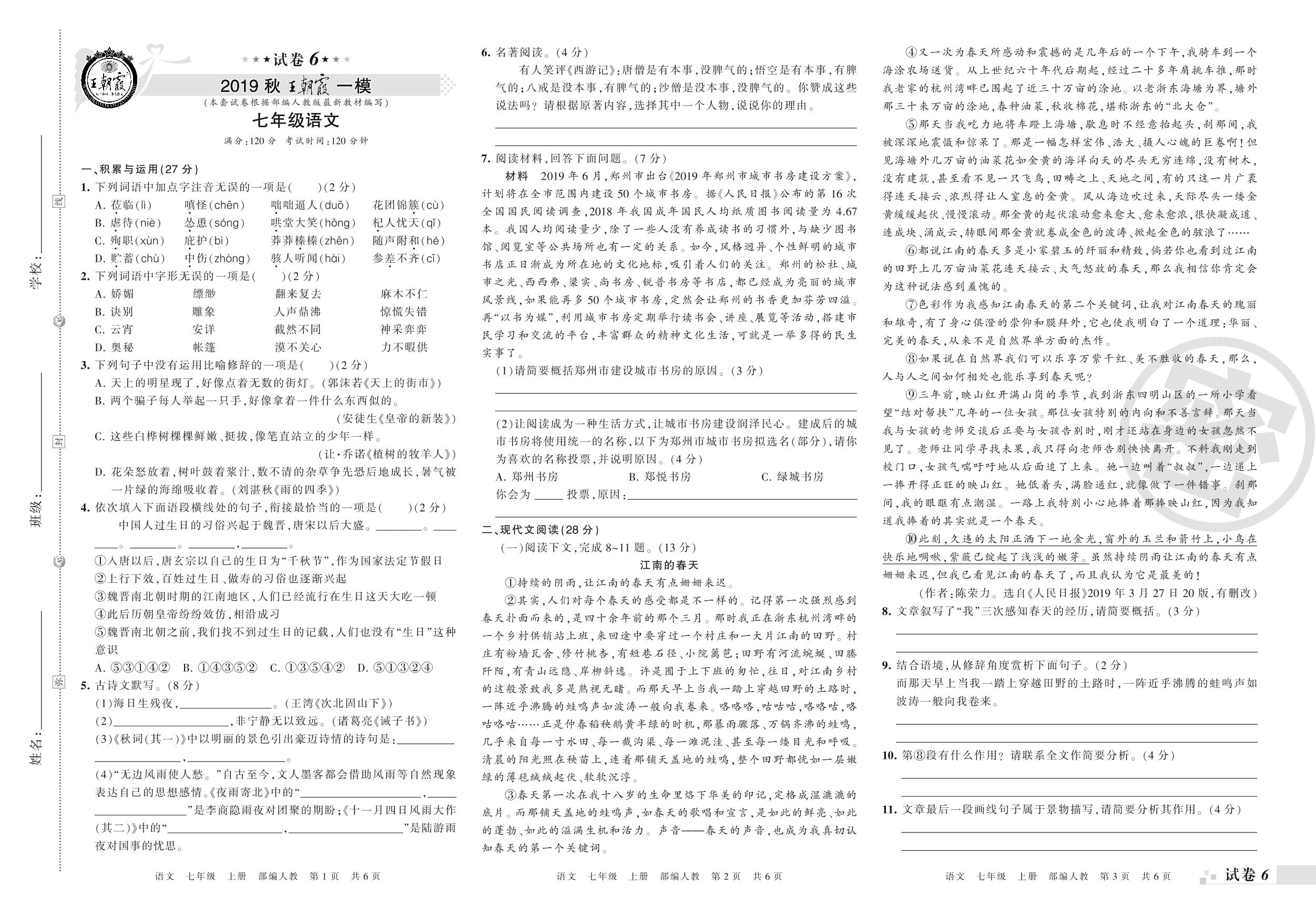 王朝霞期末模拟卷七年级上册语文(人教版)_R21080241205【6】
