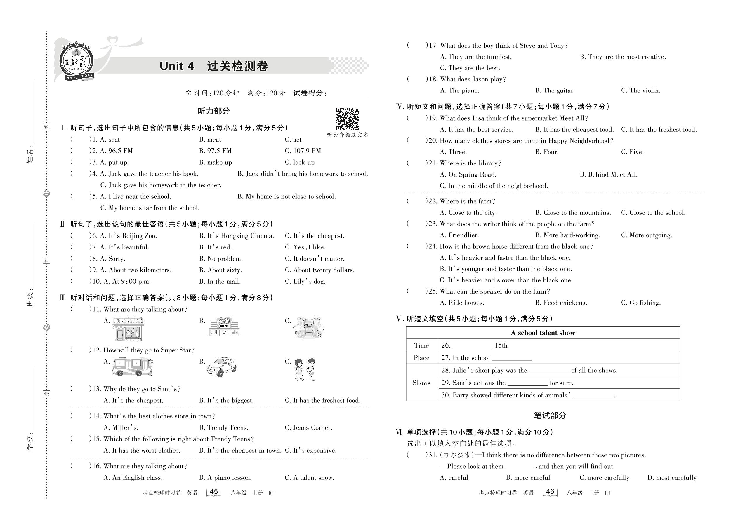 2022上册八年级英语人教版 Unit 4 过关检测卷
