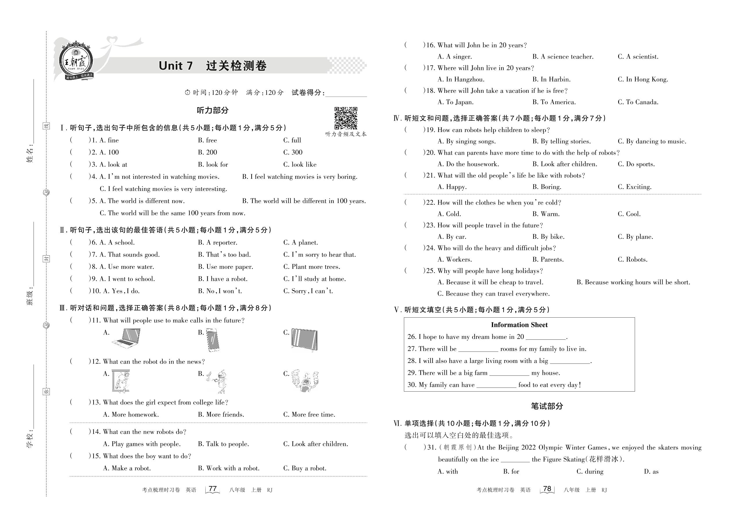 2022上册八年级英语人教版 Unit 7 过关检测卷