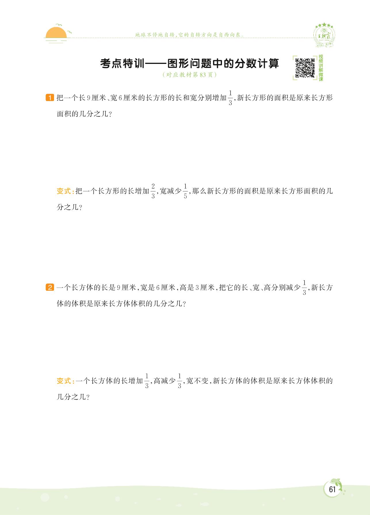 2022上册六年级数学苏教版 第五单元 分数四则混合运算——考点特训 图形问题中的分数计算