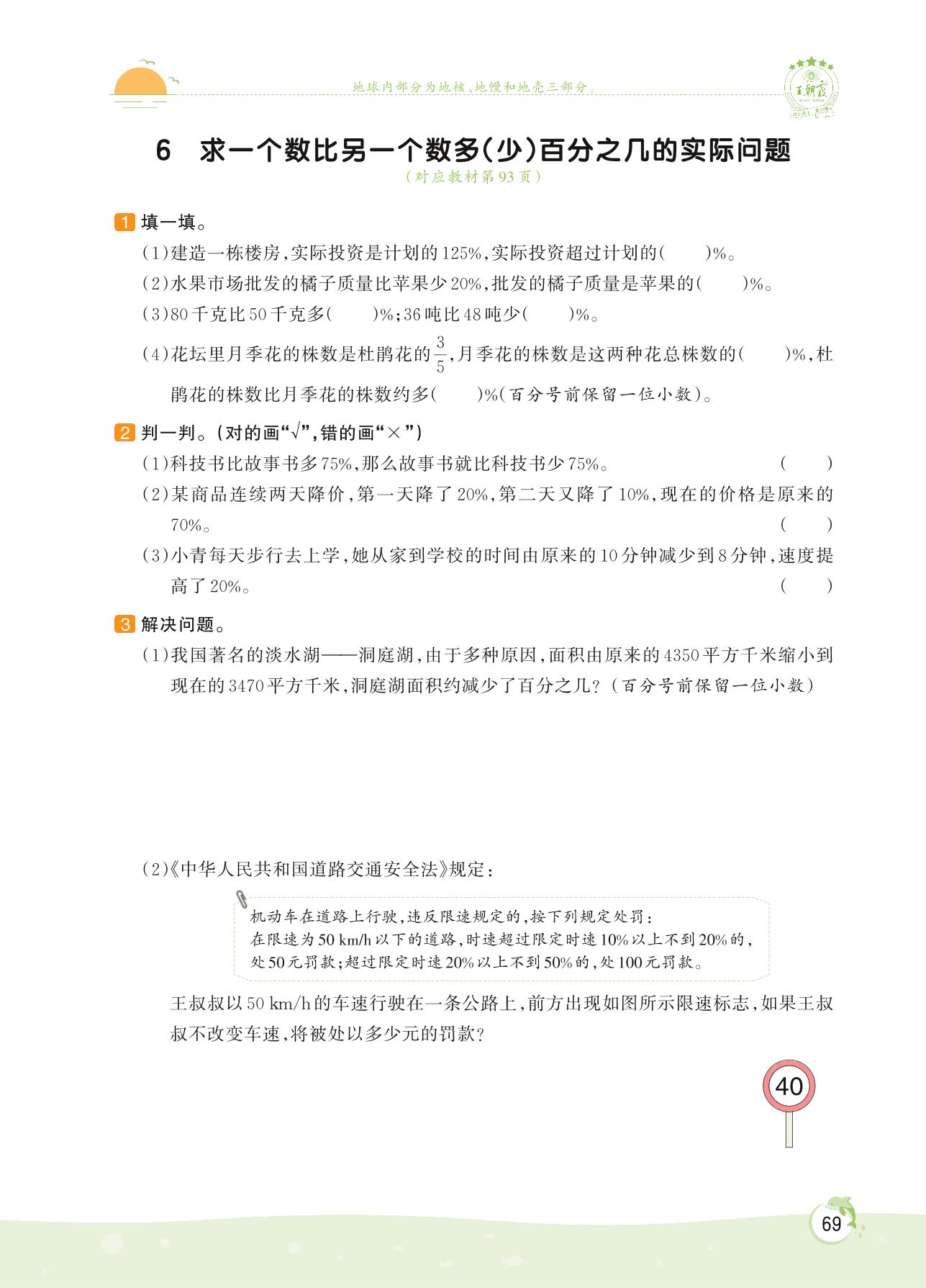 2022上册六年级数学苏教版 第六单元 百分数——6 求一个数比另一个数多(少)百分之几的实际问题