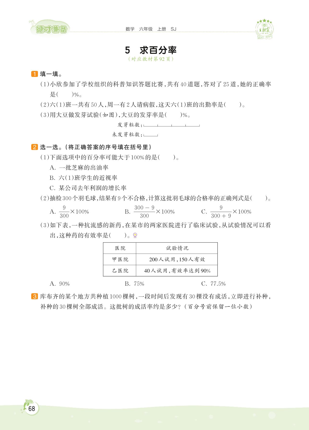2022上册六年级数学苏教版 第六单元 百分数——5 求百分率