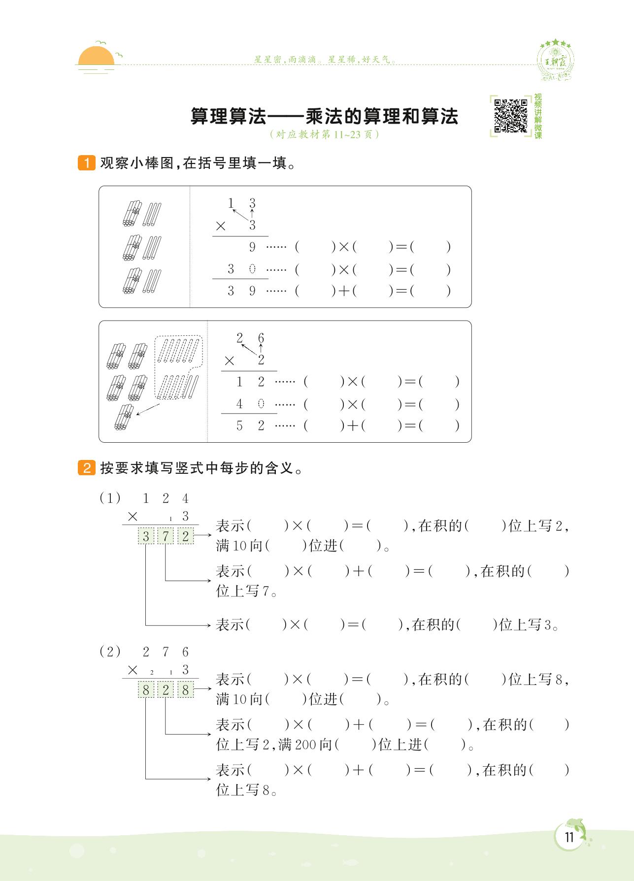 2022上册三年级数学苏教版 第一单元 两、三位数乘一位数——算理算法 乘法的算理和算法