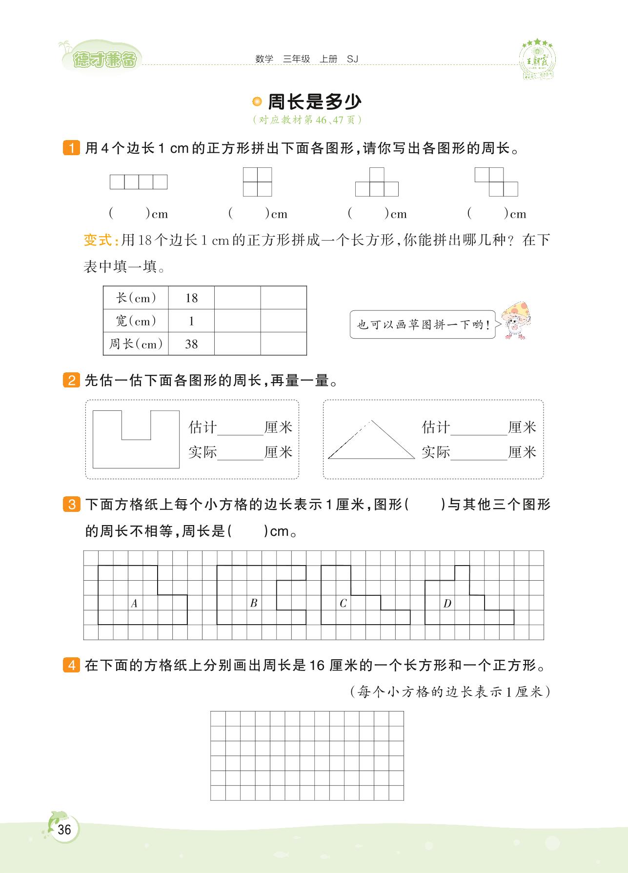 2022上册三年级数学苏教版 第三单元 长方形和正方形——周长是多少