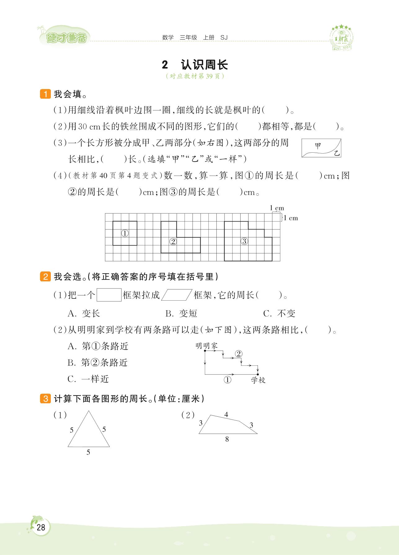 2022上册三年级数学苏教版 第三单元 长方形和正方形——2 认识周长