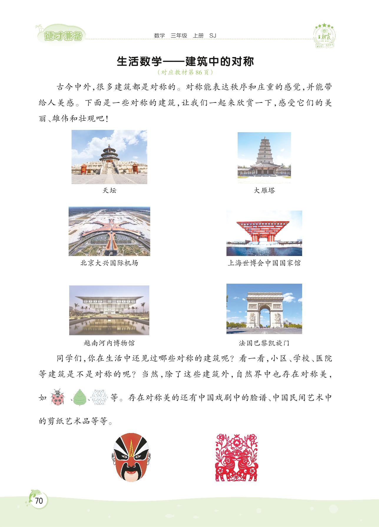 2022上册三年级数学苏教版 第六单元 平移、旋转和轴对称——生活数学 建筑中的对称