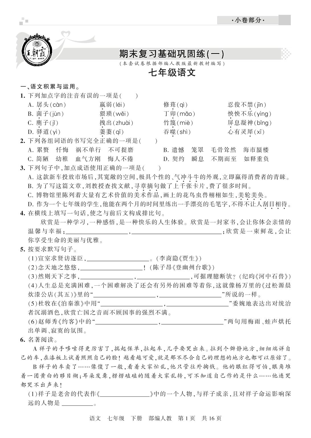 王朝霞期末小卷——期末复习基础巩固练七年级下册语文(人教版)_R21080241357【0】