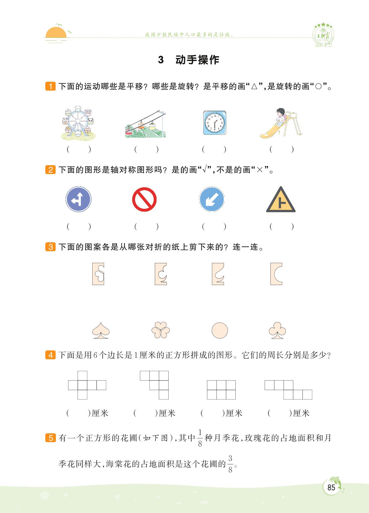 2022上册三年级数学苏教版 第八单元 期末复习——3 动手操作