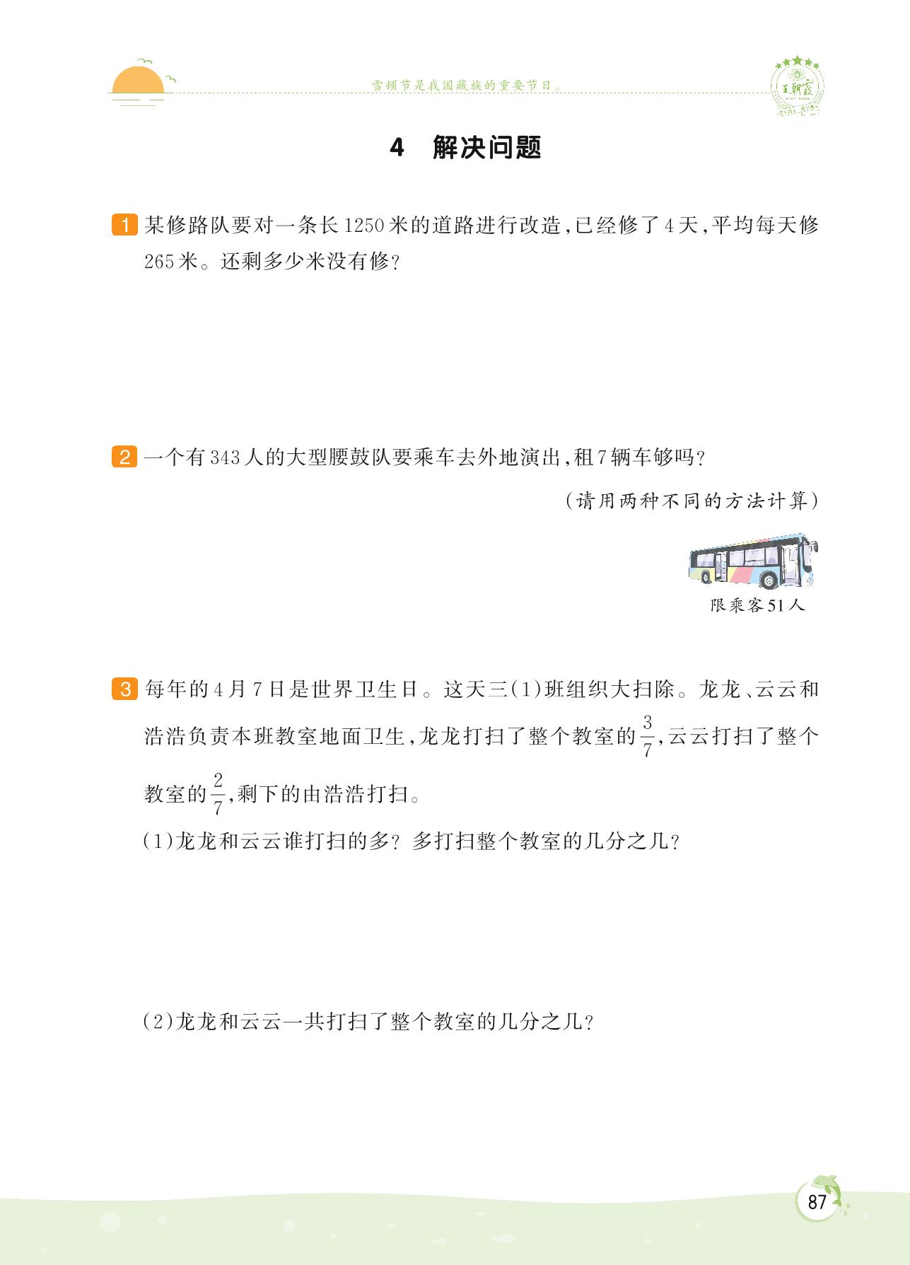 2022上册三年级数学苏教版 第八单元 期末复习——4 解决问题