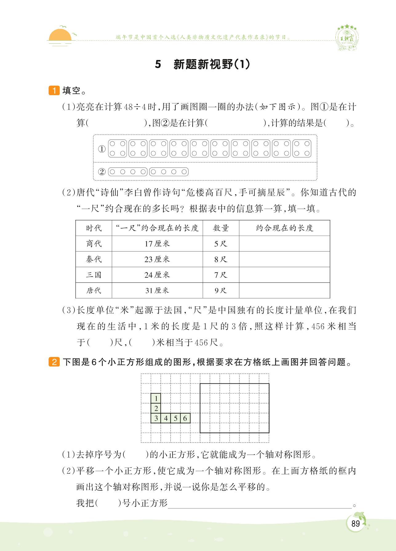 2022上册三年级数学苏教版 第八单元 期末复习——5 新题新视野(1)