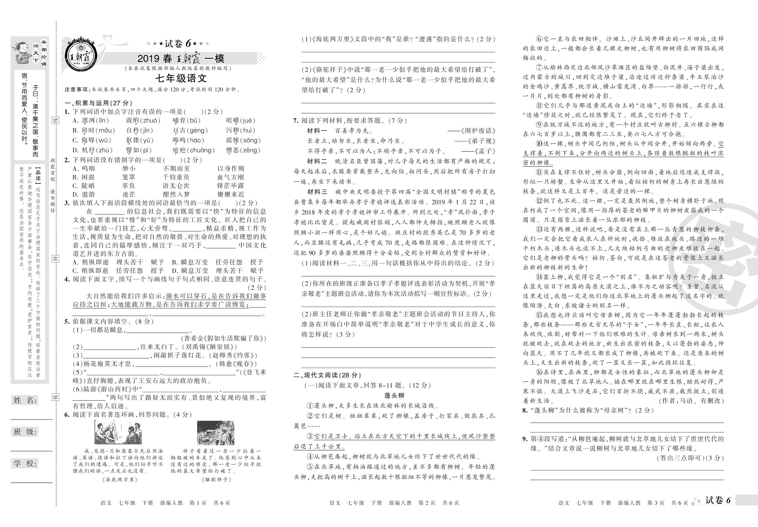 王朝霞期末模拟卷七年级下册语文(人教版)_R21080241533【6】