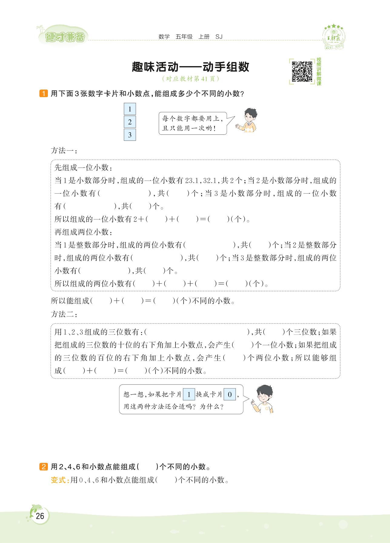 2022上册五年级数学苏教版 第三单元 小数的意义和性质——趣味活动 动手组数